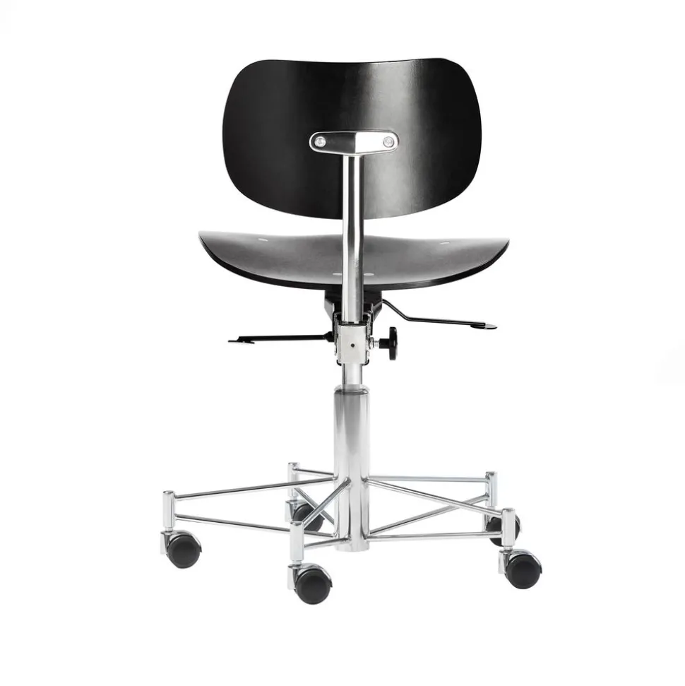 Der Bürostuhl SBG197R von , entworfen von dem renommierten deutschen Architekten Egon Eiermann, ist ein zeitloses Stück, das für die Weltausstellung 1956 in Brüssel entworfen wurde. Seitdem ist dieser Stuhl, der Eiermanns Philosophie des funktionalen Minimalismus und des verantwortlichen Designs verkörpert, bei Architekten und Kreativen sehr beliebt.