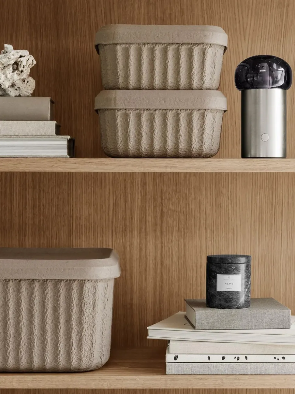 - Material: Gefäß aus Travertin oder Marmor mit Sojawachskerzen.