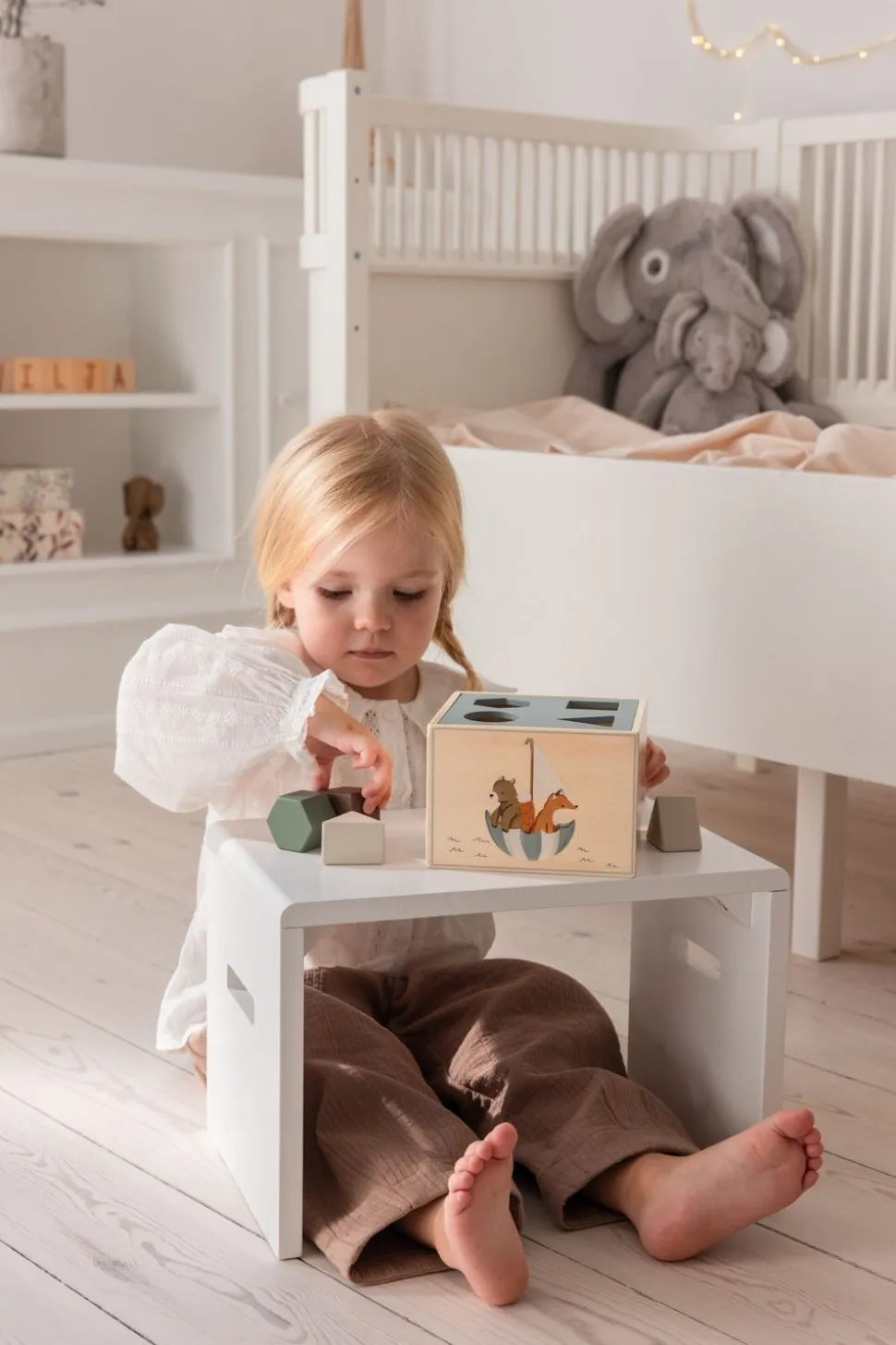Dieser Hocker ist ebenso funktionell wie stilvoll. Verwenden Sie ihn als Teil des Spielbereichs oder lassen Sie ihn als dekoratives Element dienen, das gleichzeitig als zusätzliche Sitzgelegenheit dient. Kombinieren Sie ihn mit anderen Kindermöbeln von , um eine harmonische und spielerische Atmosphäre in Ihrem Zuhause zu schaffen.
