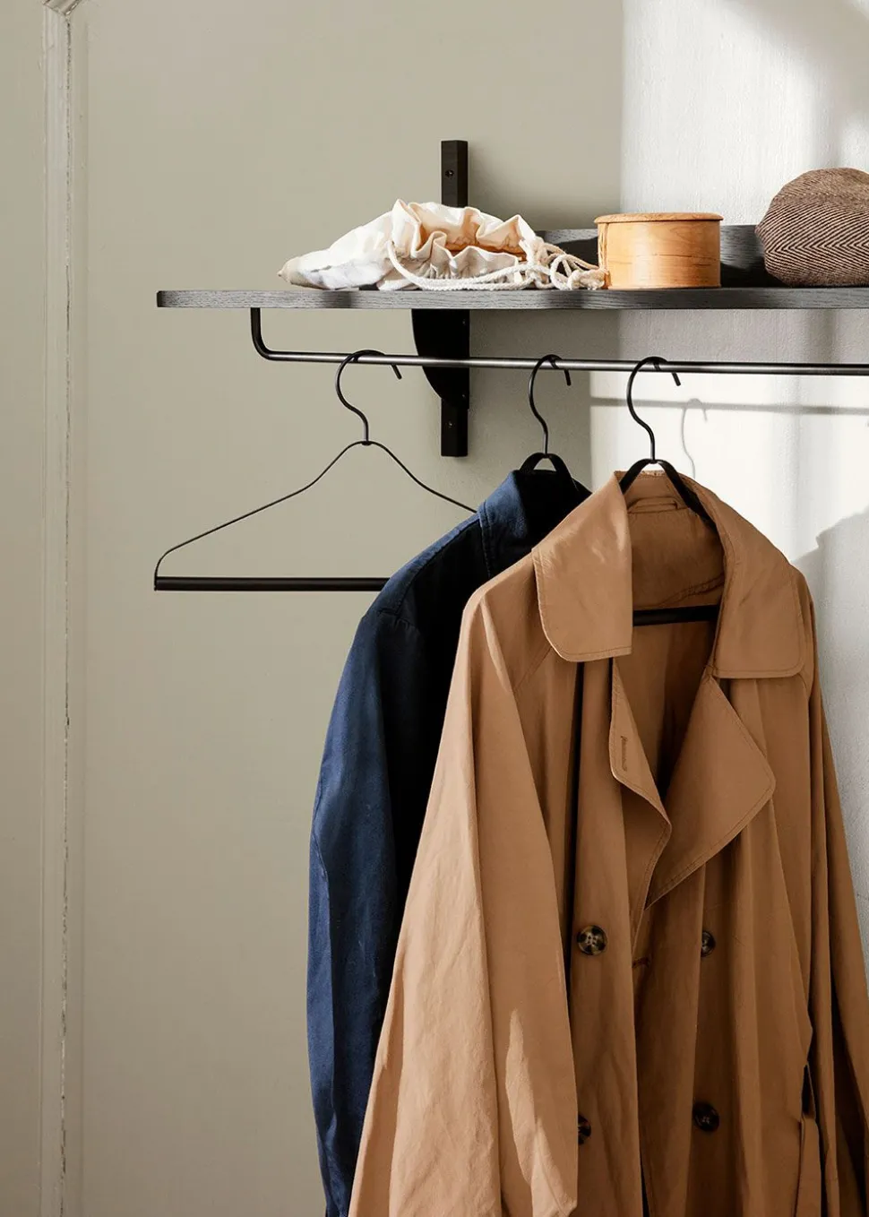 Die neue und moderne Interpretation der Regalsysteme aus den 50er und 60er Jahren. Der Garderobenständer Sector von zeichnet sich durch seine robuste Schlichtheit und die klassische Kombination aus Holz und Messing aus. Platzieren Sie den Sektor in der Eingangshalle oder sogar im Schlafzimmer.