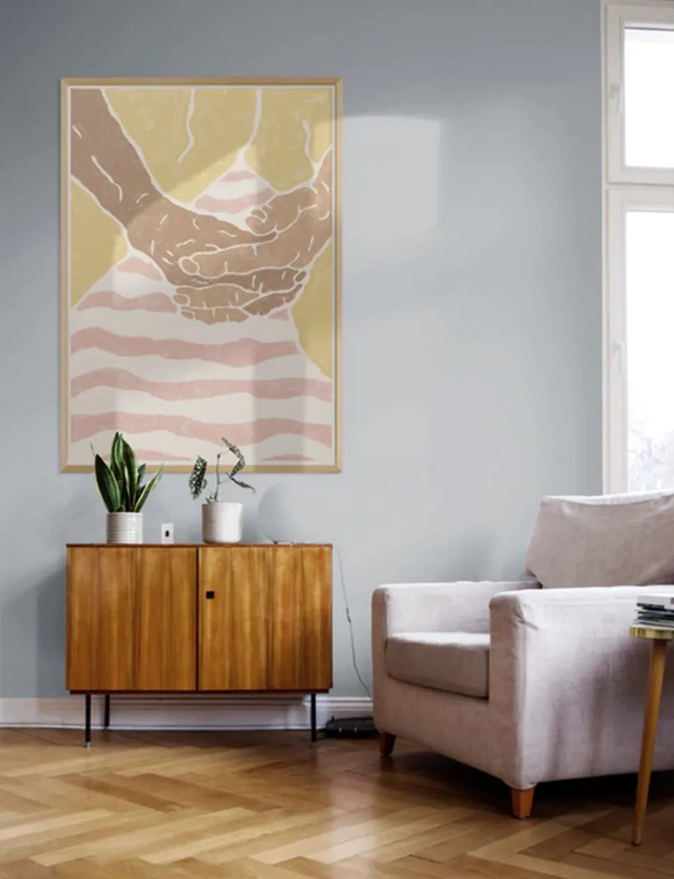 Das Senpai-Poster von Taishö ist ein elegantes Poster. Das japanische Wort Senpai (先輩) bedeutet „ältere/erfahrene Person“, was in Japan ein wichtiges kulturelles Element ist. Die beiden Hände auf dem Plakat symbolisieren die japanische Kultur, in der der Status auf dem Alter und dem Dienstalter basiert. Die Senpai-Beziehung zeugt von großem Respekt vor älteren und erfahreneren Menschen.
