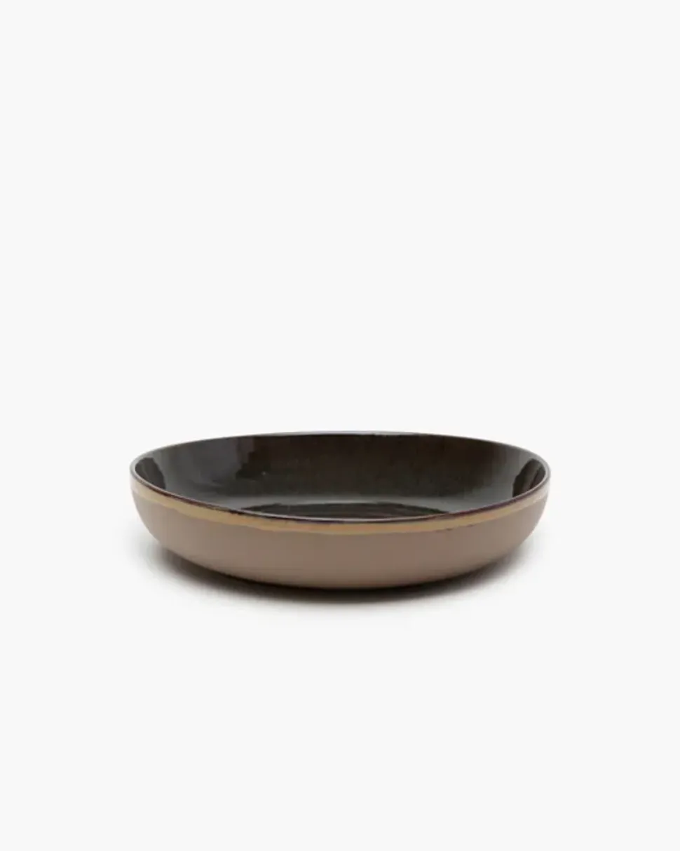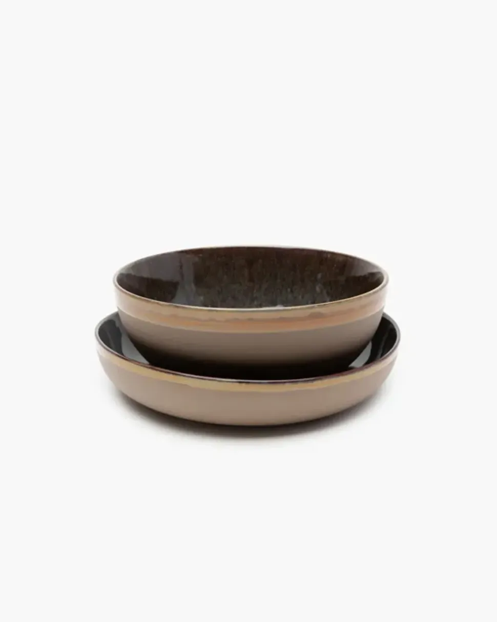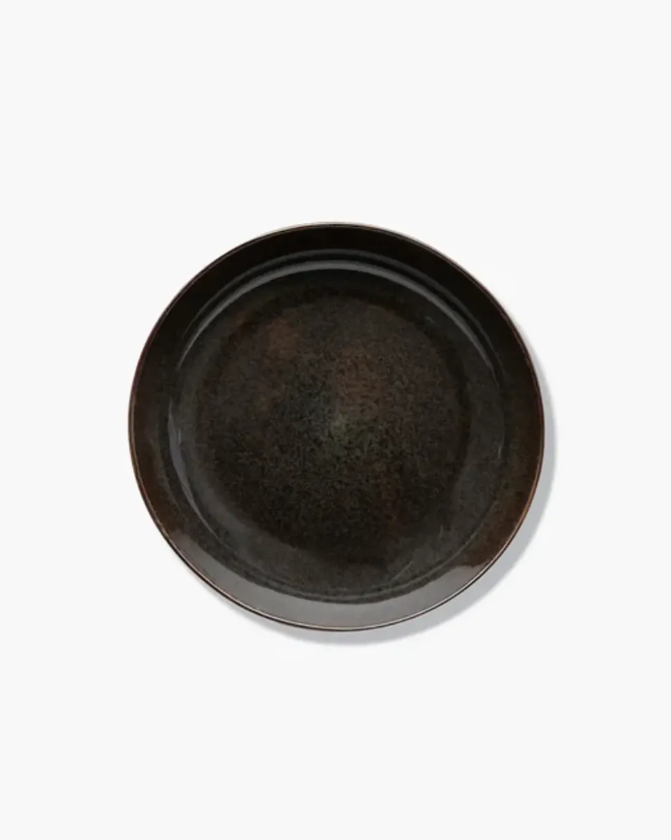Der Servierteller Surface von , entworfen von Sergio Herman, ist eine Hommage an die raue, unberührte Natur Zeelands und bringt einen authentischen Touch auf den Tisch. Das Steinzeug wird mit Sorgfalt glasiert, wodurch jeder Teller seinen eigenen Ausdruck erhält und das Essen zu einem Erlebnis von rustikaler Schönheit wird. Mit seiner ungleichmäßigen Struktur und den tiefen Farbschattierungen ist dies ein Servierteller, der sowohl Qualität als auch unvergleichliche Handwerkskunst ausstrahlt.