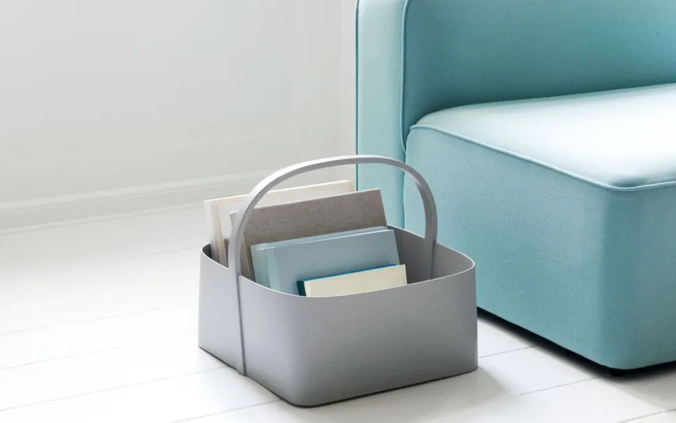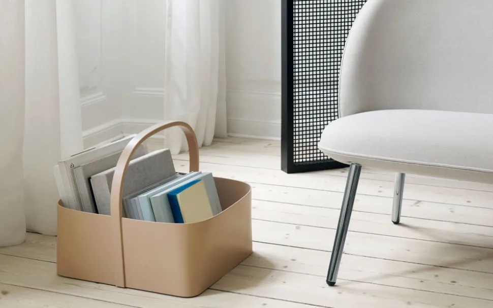 Der Shaker Basket von ist eine Neuinterpretation des amerikanischen Shaker-Stils, der dafür bekannt ist, Einfachheit, Benutzerfreundlichkeit und Qualität als Grundprinzipien zu haben. Diese Prinzipien bilden die Grundlage für das Design des Shaker Basket, der sowohl in seiner Form als auch in seinen Materialien Qualität und Minimalismus ausdrückt. Die Inspirationsquelle für den Shaker Basket sind die traditionellen Aschekörbe, die zur Aufbewahrung der Holzspäne hergestellt wurden, die aus den Werkstätten der Shaker kamen und in den Holzöfen verwendet wurden. Die traditionellen Kurvenformen und Designprinzipien passen perfekt zu den modernen Materialien und Techniken, die zur Herstellung des Shaker-Korbs verwendet werden. All dies ergibt ein exquisites und zeitgemäßes Design mit historischen Bezügen. Die klaren Linien des Shaker-Korbs schaffen einen ästhetischen Ausdruck. Seine rechteckige, abgerundete Form gibt ein angenehmes grafisches Aussehen, das den Korb zu einem völlig einzigartigen Aufbewahrungskorb macht.