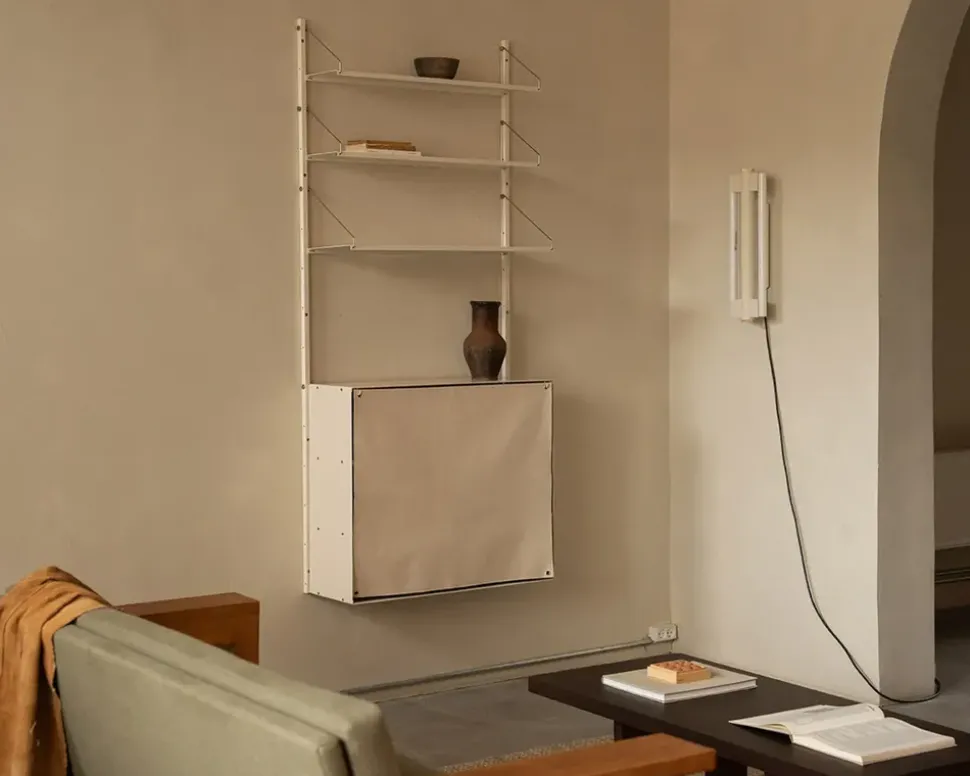Das Shelf Library Canvas Cabinet Section von Frama ist ein Meisterwerk an Funktionalität und außergewöhnlicher Ästhetik, das jedem Zuhause einen Hauch von Raffinesse verleiht. Diese elegante Aufbewahrungslösung kombiniert Edelstahl und Segeltuch in einer harmonischen Mischung, die ein Gefühl von Wärme und Zeitlosigkeit ausstrahlt. Mit seinen verstellbaren Einlegeböden bietet er flexiblen Stauraum, während sein minimalistisches Design dafür sorgt, dass er jeden Raum ergänzt, ohne ihn zu dominieren. Seine robuste Konstruktion und die Liebe zum Detail machen ihn nicht nur zu einer praktischen Ergänzung für Ihr Zuhause, sondern auch zu einem Kunstwerk für sich.
