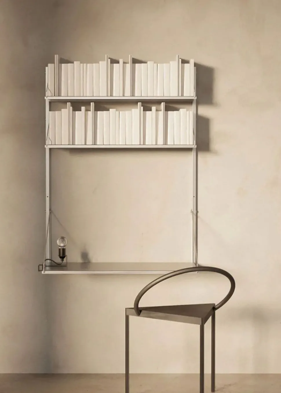 Mit seinem minimalistischen und stilvollen Design eignet sich dieses Möbelstück perfekt für die Organisation Ihrer Bücher, Büromaterialien und Dekorationen. Das ausgewogene Verhältnis zwischen offenen Regalen und einem Schreibtisch ermöglicht es Ihnen, Ihren persönlichen Arbeitsbereich zu schaffen und gleichzeitig Ihre Lieblingsbücher und Kunstwerke zu präsentieren.