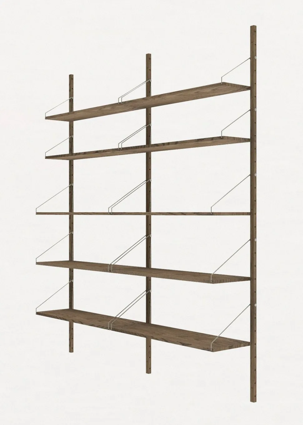 Die Shelf Library Collection ist einer der FRAMA-Klassiker, der die Essenz des Frama-Design-Universums mit dem Fokus auf nordischen Minimalismus aus hochwertigsten organischen Materialien verkörpert. Der Designer Kim Richardt hat eine Reihe von universellen und multifunktionalen Elementen aus naturbelassener, weiß geölter und dunkel geölter Eiche geschaffen, die durch glänzenden Stahl ergänzt werden. Die Regale werden einfach an den Wandhalterungen befestigt und können je nach Bedarf neu angeordnet werden. So entsteht ein universelles und zeitloses Design, das in allen Wohnungen und Räumen eingesetzt werden kann.