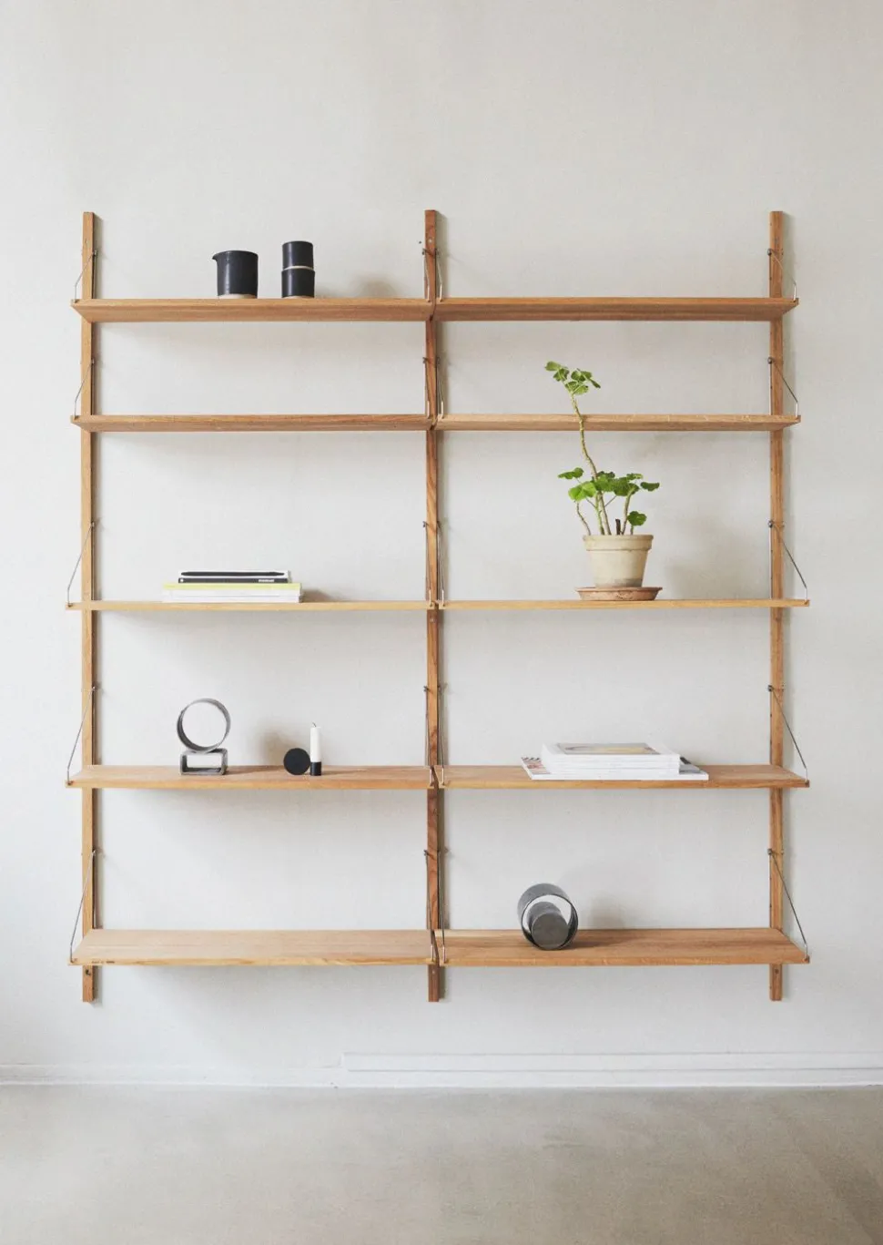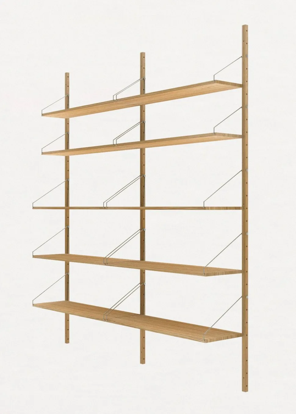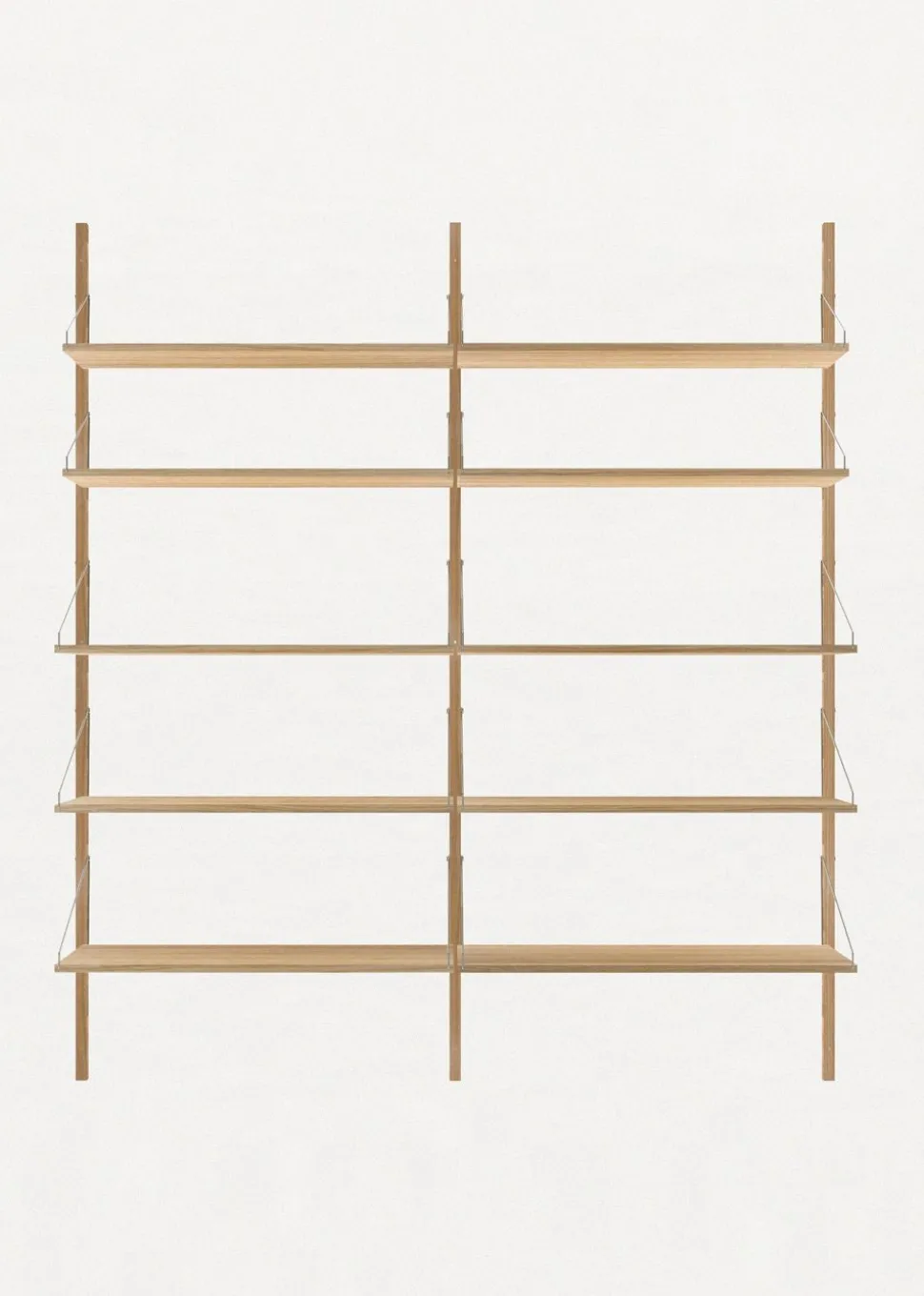 Die Shelf Library Collection ist einer der FRAMA-Klassiker, der die Essenz des Frama-Design-Universums mit dem Fokus auf nordischen Minimalismus aus hochwertigsten organischen Materialien verkörpert. Der Designer Kim Richardt hat eine Reihe von universellen und multifunktionalen Elementen aus naturbelassener, weiß geölter und dunkel geölter Eiche geschaffen, die durch glänzenden Stahl ergänzt werden. Die Regale werden einfach an den Wandhalterungen befestigt und können je nach Bedarf neu angeordnet werden. So entsteht ein universelles und zeitloses Design, das in allen Wohnungen und Räumen eingesetzt werden kann.