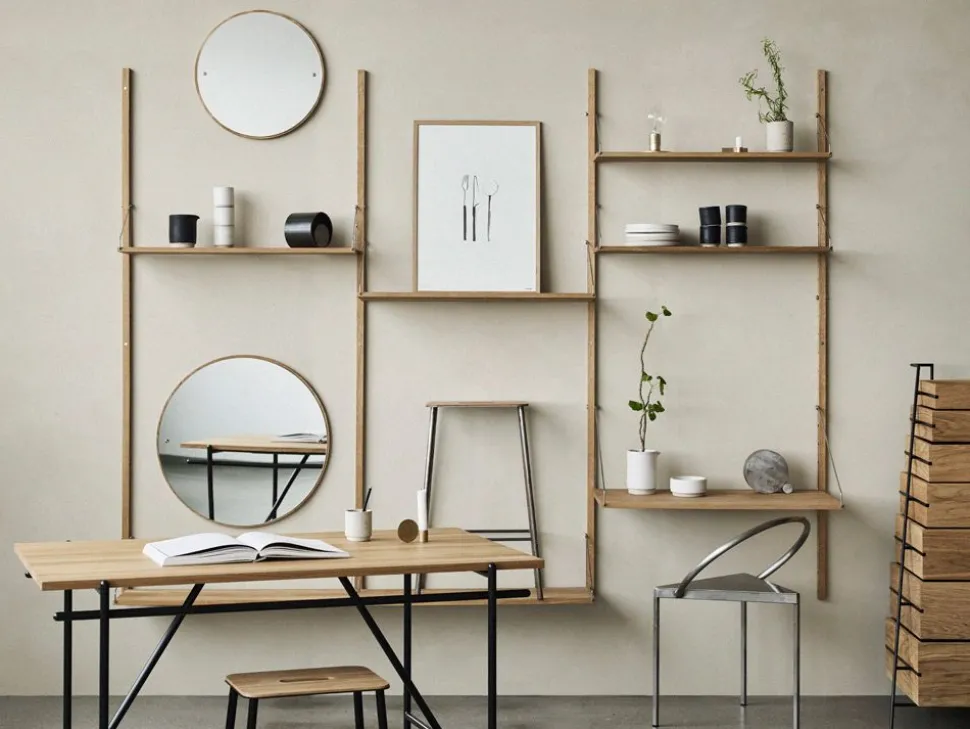 Die Regal-Bibliotheks-Kollektion ist ein FRAMA-Klassiker, der die Essenz des Frama-Design-Universums mit dem Schwerpunkt auf nordischem Minimalismus in organischen Materialien von höchster Qualität verkörpert. Der Designer Kim Richardt hat eine Reihe von universellen und multifunktionalen Elementen aus naturbelassener, weiß geölter und dunkel geölter Eiche sowie aus Edelstahl entworfen. Die Regale werden einfach an der Wandhalterung befestigt und können je nach Bedarf neu angeordnet werden. So entsteht ein universelles und zeitloses Design, das in allen Wohnungen und Räumen verwendet werden kann.