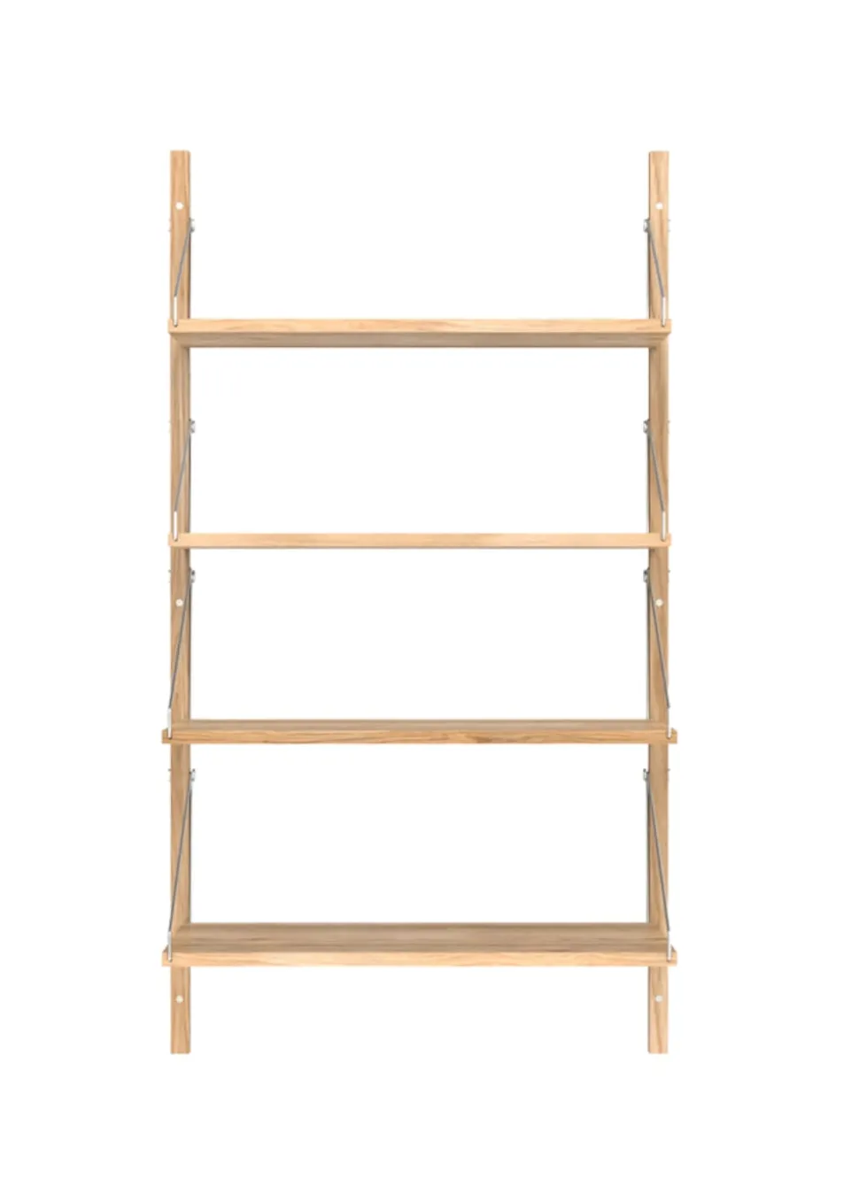 - Material: Regalböden und Schienen sind aus naturgeölter, massiver Eiche gefertigt. Beschläge und Schrauben sind aus rostfreiem Stahl.