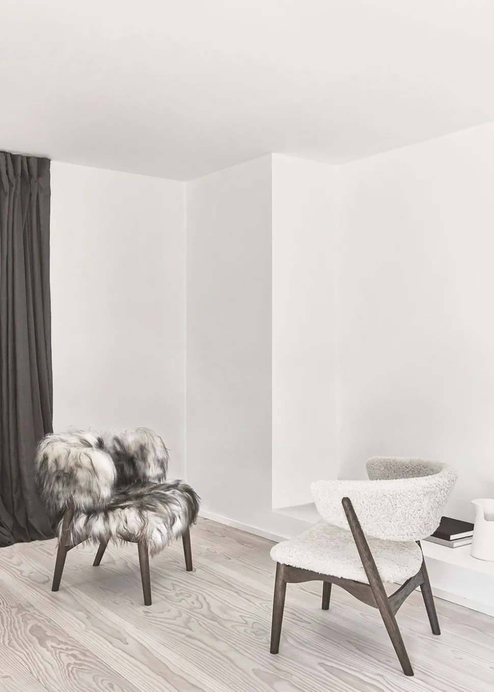 DerSibast No.7 Lounge Chair ist von dem zeitlosen Sibast No.7 Esszimmerstuhl inspiriert, den Helge Sibast 1953 entworfen hat. Ditlev Sibast und seine Frau Anna entwarfen den Lounge Chair als Hommage an den originalen Esszimmerstuhl mit großem Respekt und Liebe für das ikonische Design. Die Verwandtschaft des Loungesessels mit dem Esszimmerstuhl zeigt sich in der großen geformten Rückenlehne, die jedoch eine niedrigere Höhe und breitere Proportionen aufweist, die dem Loungesessel seinen entspannten Komfort verleihen. Sitz und Rückenlehne sind entweder mit kurzem oder langem Lammfell gepolstert, das nicht nur für Komfort und Textur der Polsterung sorgt, sondern auch einen schönen Kontrast zwischen dem harten Holz und der ultraweichen Wolle bildet.