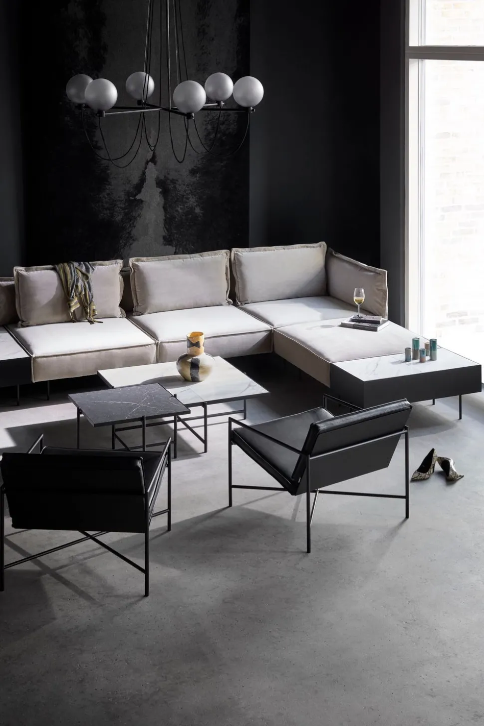 Der Beistelltisch wurde von Emil Thorup entworfen. Der Tisch ist schick und kann als Couchtisch oder Nachttisch verwendet werden. Der Marmor ist in einem Metallrahmen montiert, der dem Tisch ein leichtes und luftiges Aussehen verleiht. Die natürlichen Variationen des Marmors machen jeden Tisch einzigartig.