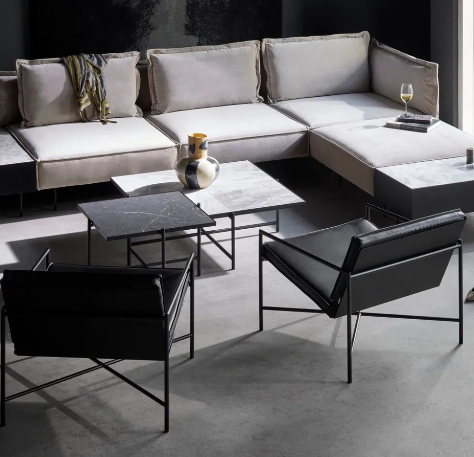 Der Beistelltisch wurde von Emil Thorup entworfen. Der Tisch ist schick und kann als Couchtisch oder Nachttisch verwendet werden. Der Marmor ist in einem Metallrahmen montiert, der dem Tisch ein leichtes und luftiges Aussehen verleiht. Die natürlichen Variationen des Marmors machen jeden Tisch einzigartig.
