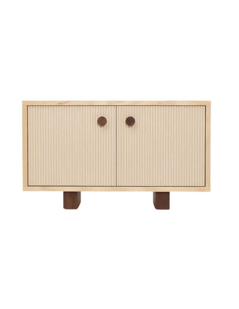 Mit seinen geräumigen Stauraumlösungen eignet sich das Sideboard sowohl für das Wohn- als auch für das Esszimmer, wo es vom Geschirr bis zu Dekorationsgegenständen alles aufnehmen kann. Dank seines eleganten Designs lässt es sich leicht mit anderen Möbeln der Nobodinoz-Kollektion kombinieren, wodurch eine harmonische und kohärente Inneneinrichtung entsteht.