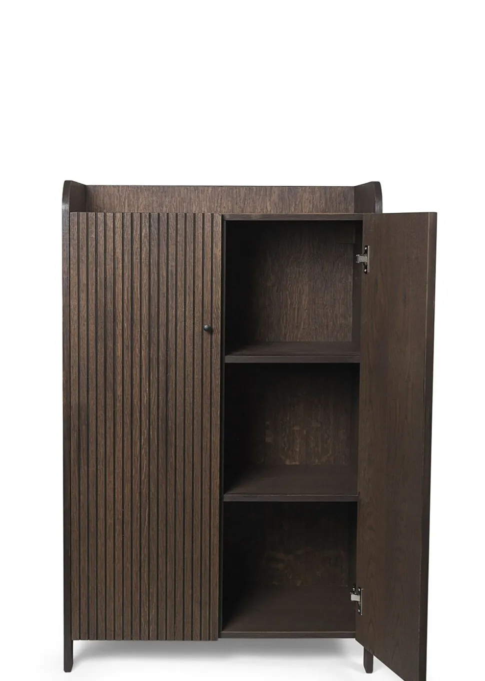 Der Sill Cupboard von zeichnet sich durch seine abgerundeten Details, wie die gerillten Türen und die weichen Kanten, aus. Der Schrank bietet reichlich Stauraum, ob im Wohnzimmer, im Bad oder im Flur, wo die Schrankoberseite hohe Kanten hat, die es Ihnen ermöglichen, Ihre liebsten Dekoartikel zu präsentieren.