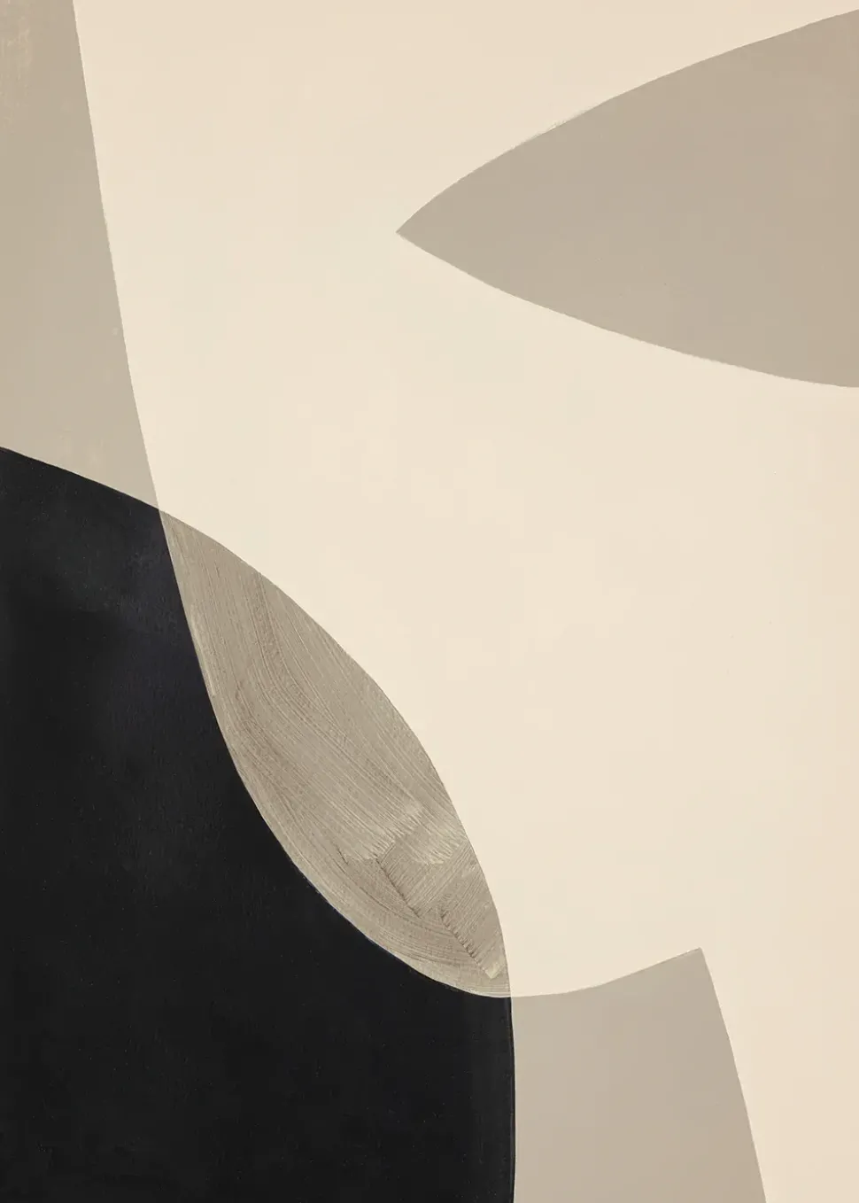 Berit hat betont, dass die Plakate beruhigende, handgemalte Formen mit einer Reihe von neutralen Tönen haben sollten. Die beiden Bilder ergänzen sich gut, denn sie haben das gleiche Design, nur mit anderen Formen. Die Plakate kombinieren schöne Farbtöne in einer einzigartigen Kombination. Die schönen Farbtöne bringen die kreativen Grundformen zur Geltung.