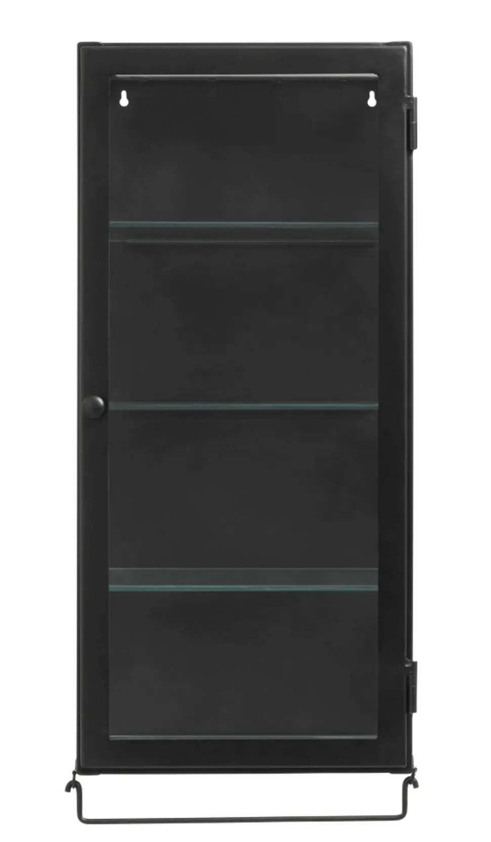 Der schöne Hängeschrank SIRI von ist aus Metall gefertigt. Das schlichte und rustikale Design macht ihn zu einer perfekten Ergänzung für jedes Zuhause. Der SIRI-Hängeschrank hat 3 herausnehmbare Glaseinlegeböden (5 mm dick), Glas an den Seiten und 1 Glasschublade (3 mm dick), die mit einem Magnetsystem geschlossen wird. Die Einlegeböden können entfernt werden. Bitte beachten Sie, dass das Produkt teilweise handgefertigt ist und daher Unregelmäßigkeiten und Abweichungen in Farbe, Ausführung und Größe auftreten können, was Teil des einzigartigen Aussehens des Produkts ist.