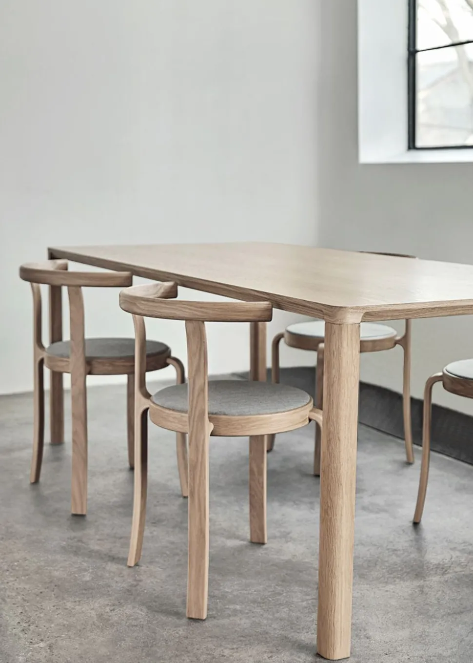 Der Slender Esstisch ist ein modernes Möbelstück mit einem eleganten und klaren Look. Der von Scaffidi Design im Jahr 2017 entworfene Tisch hat ein schlankes Profil und eine durchgehende Kontur entlang der Kanten, die dem Tisch ein klares Aussehen verleiht. Die Beine und die Tischplatte sind so zusammengesetzt, dass sie optisch miteinander verschmelzen und ein harmonisches Ganzes bilden. Die vier Tischbeine sind in den äußeren Ecken platziert, wodurch der Tisch eine leichte und luftige Konstruktion erhält. Die Ecken des Tisches sind sanft abgerundet, was ein angenehmes Gefühl beim Sitzen vermittelt.