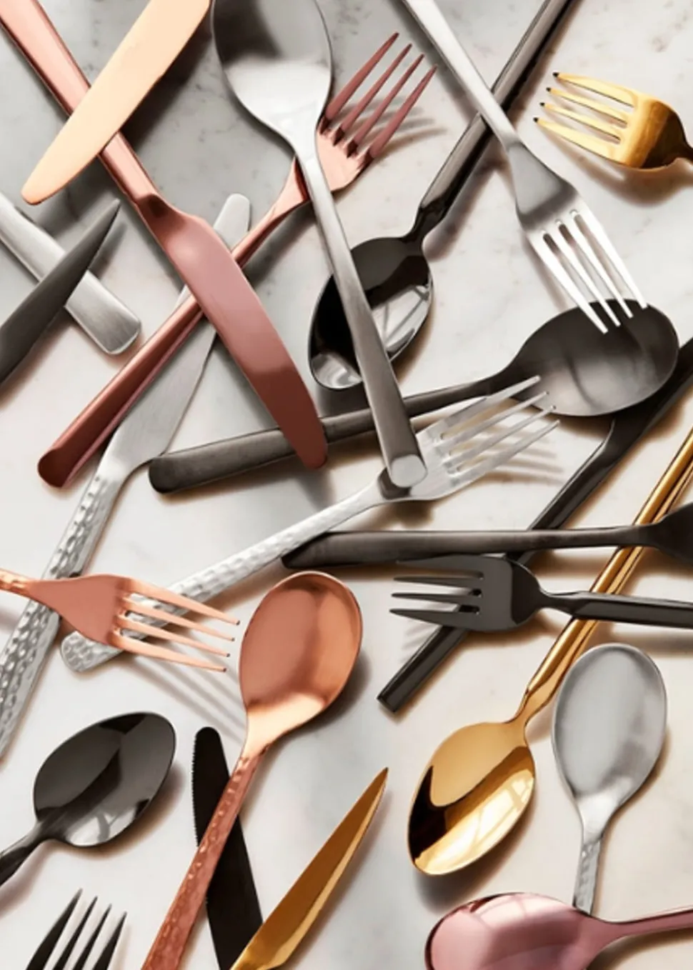 Drei schöne und verschiedenfarbige Bestecke mit 16 Teilen, 4 Gabeln, 4 Messer, 4 Löffel und 4 Teelöffel. Perfekt, wenn Sie einen ruhigen und eleganten Tisch haben wollen, bei dem das Besteck zusammenpasst. Sie können sich entweder für eine der Farben Gold, Satin und Schwarz entscheiden, oder Sie kaufen eine Packung von jeder Farbe, die Sie dann abwechselnd benutzen können.