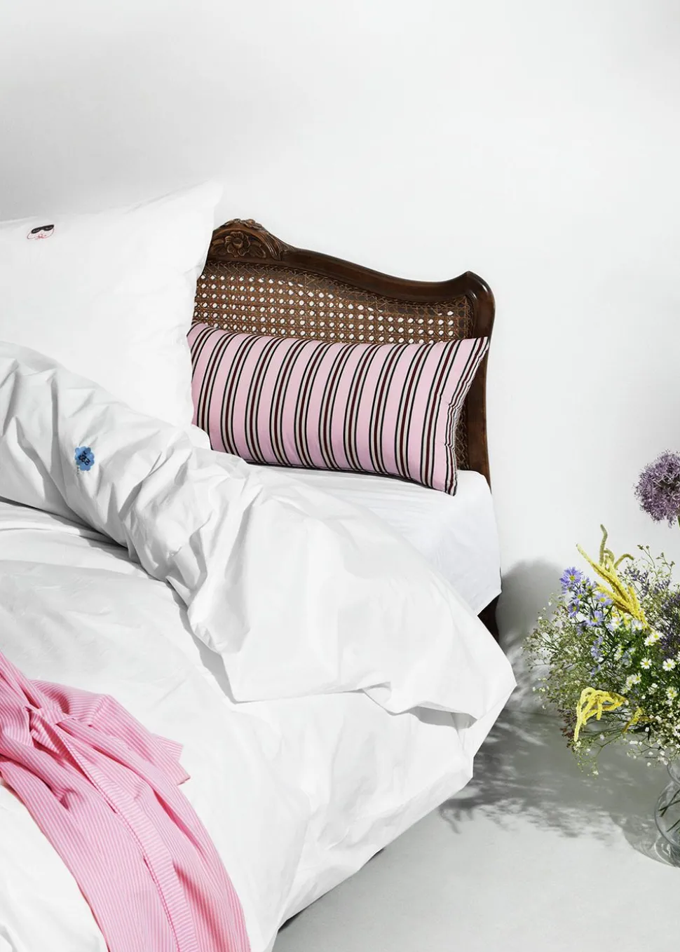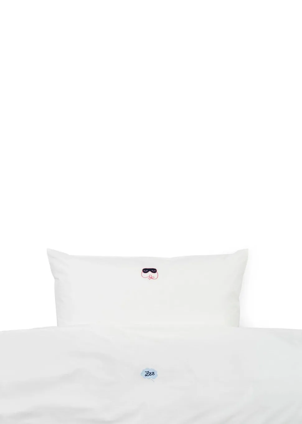 Snooze ist ein Bettlaken aus Normann Kopenhagen. Das Bettlaken besteht aus einem Kissenbezug mit Kuvertverschluss und einem Bettdeckenbezug mit verstecktem Reißverschluss an der Unterseite. Die Bettwäsche ist aus 100% OEKO-TEX Baumwolle gefertigt. Das Betttuch ist in vier verschiedenen Größen und fünf verschiedenen Farben erhältlich. Jede Variante wird mit einer einzigartigen Stickerei auf der Vorderseite und einer passenden Tasche mit Kordelzug geliefert.