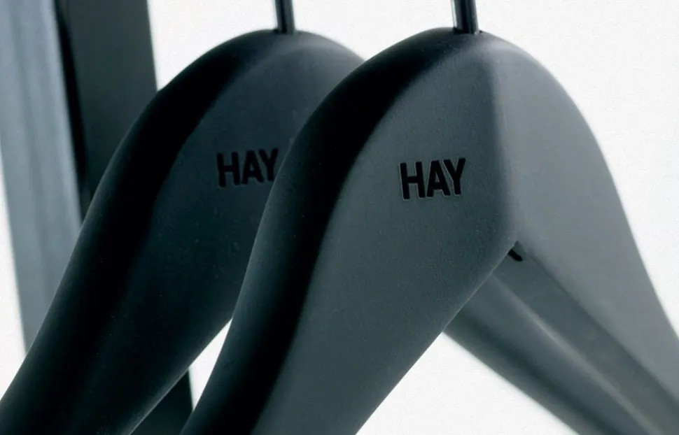 Praktische Kleiderbügel mit einer matten Gummioberfläche, die die Kleidung hält und gleichzeitig ein einfaches Design hat.