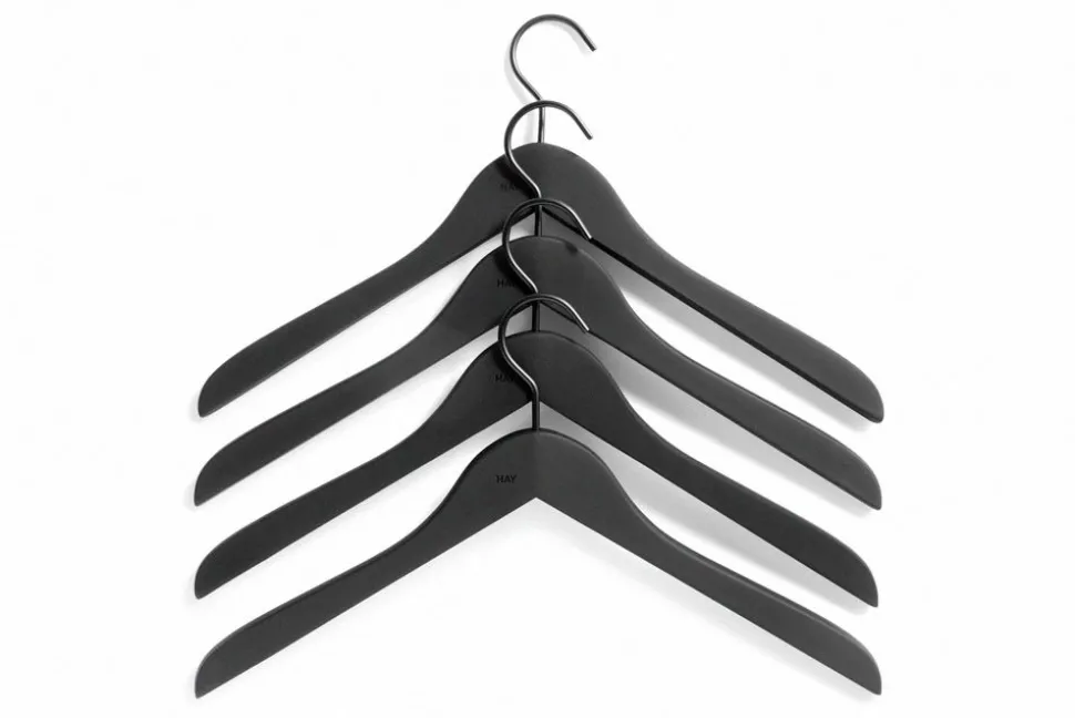 Praktische Kleiderbügel mit einer matten Gummioberfläche, die die Kleidung hält und gleichzeitig ein einfaches Design hat.