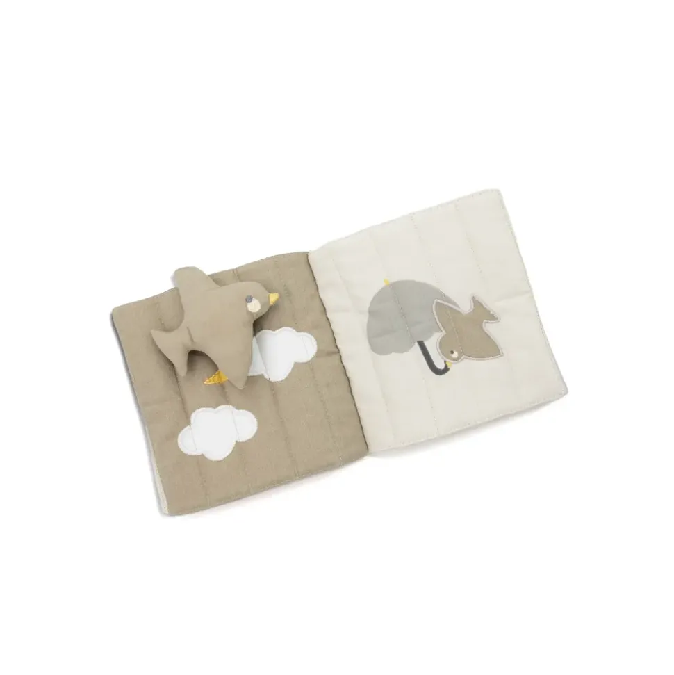Das Moonboon-Stoffbuch ist ein zauberhafter kleiner Schatz aus der Over the Moon-Kollektion. Es besteht aus 100 % Bio-Baumwolle und überschüssigem Stoff – weich, sicher und voller Fantasie. Gefüllt mit feinen Details, Stickereien und Figuren, die von Hans Christian Andersens Andersens Sandmännchen-Universum inspiriert sind, weckt es die Neugierde mit einem Vogel, einem Mond, einer Wolke und einem Regenschirm – alles bereit, Ihr Baby auf ein Abenteuer mitzunehmen.