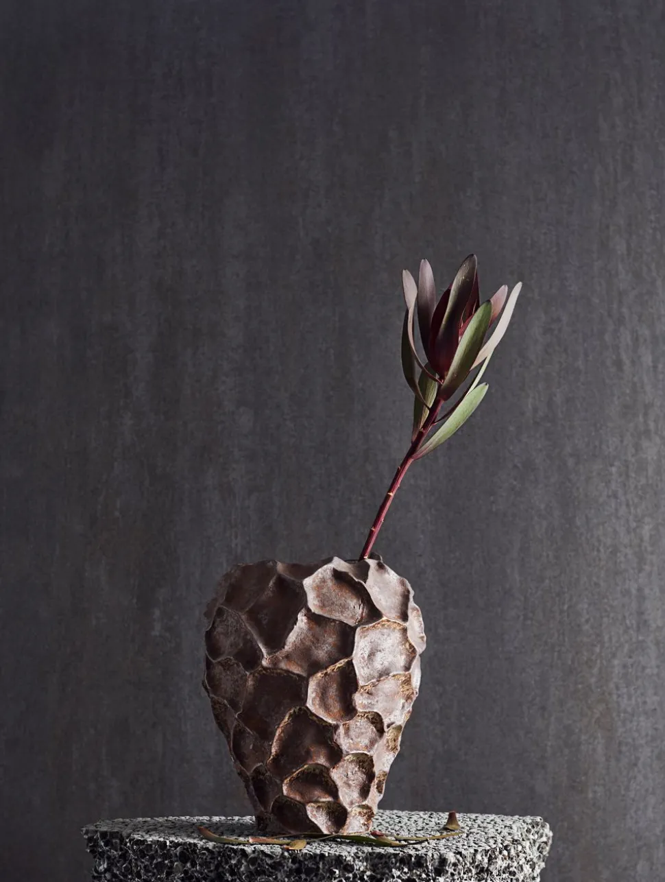 Das Design der Soil-Vase mit Rostglasur konzentriert sich auf die Wirkung von Natur und Zeit. Mit ihrer einzigartigen Textur, die an getrocknete, rissige Erde erinnert, und der Rostglasur, die die schöne Wirkung der Natur auf das von Menschenhand geschaffene Design unterstreicht, ist die Soil-Vase mit Mutter Natur im Hinterkopf gemacht. Die Vase von Muubs ist ein skulpturales Element, wenn sie allein verwendet wird, kann aber auch für frische und getrocknete Blumen verwendet werden.