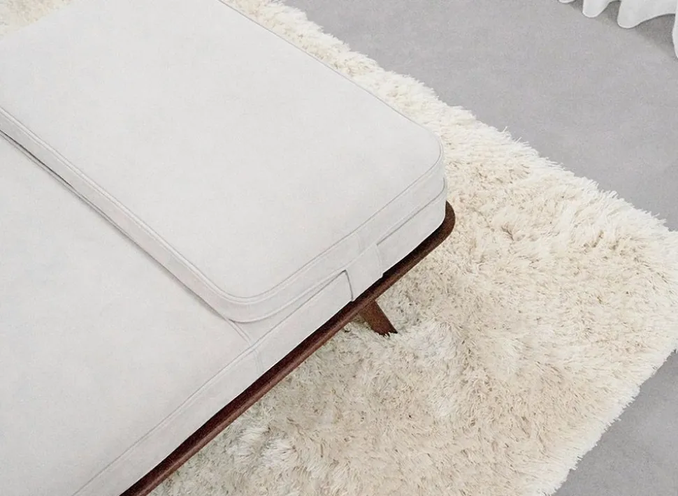 - Vermeiden Sie, dass Textilien und Leder mit Flüssigkeiten oder Ölen in Berührung kommen. Falls Flecken auftreten, wird eine professionelle Reinigung empfohlen. Verwenden Sie zur Reinigung der Rahmen ein feuchtes Tuch ohne scharfe Chemikalien.
