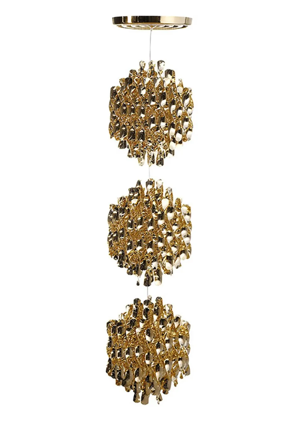 Spiral wurde 1969 von entworfen. Die Spiral-Serie besteht aus Anhängern, die in den Farben Gold, Silber und mehrfarbig erhältlich sind. Die Spiralen der Lampe sind aus ABS-Kunststoff gefertigt. Der Rahmen ist aus Metall gefertigt.