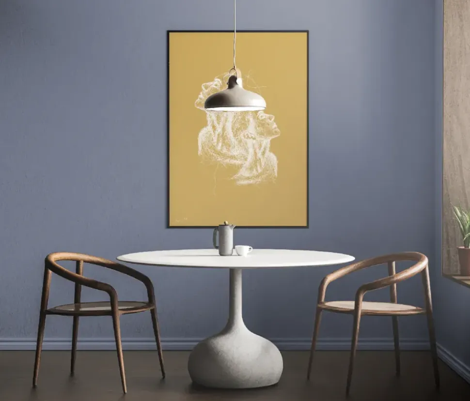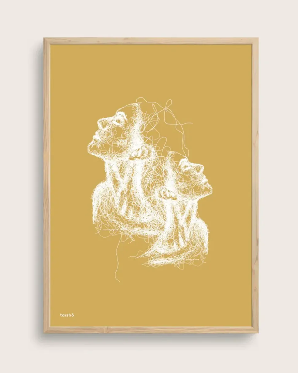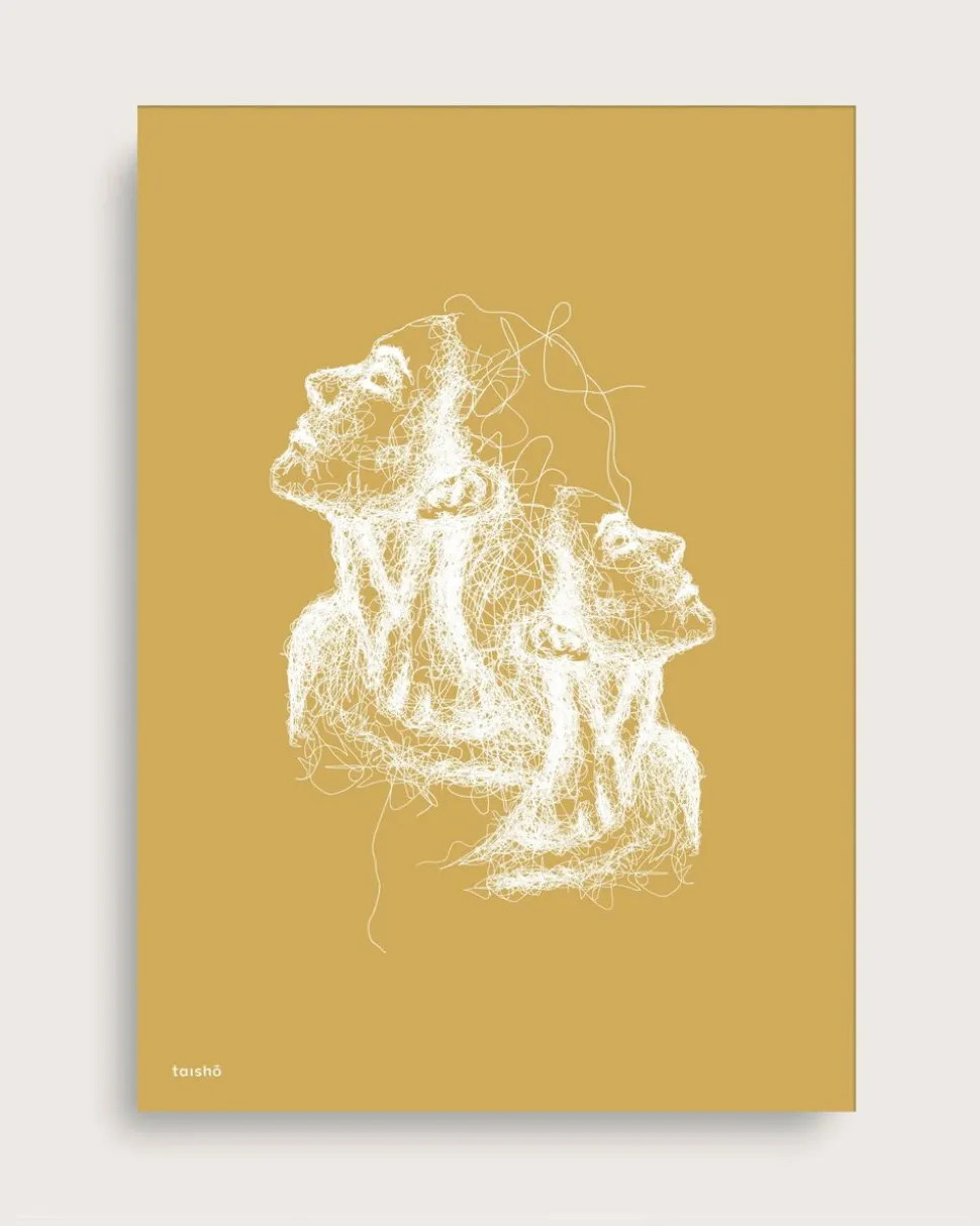 Das Gefühl, die frische Frühlingsluft einzuatmen und das Zwitschern der Vögel in den Bäumen zu hören, die ihre grünen Blätter zurückbekommen haben. „Frühlingsgefühle“ von zeigt zwei Gesichter, die sich aus skurrilen Strichen und schönen Farben zusammensetzen.