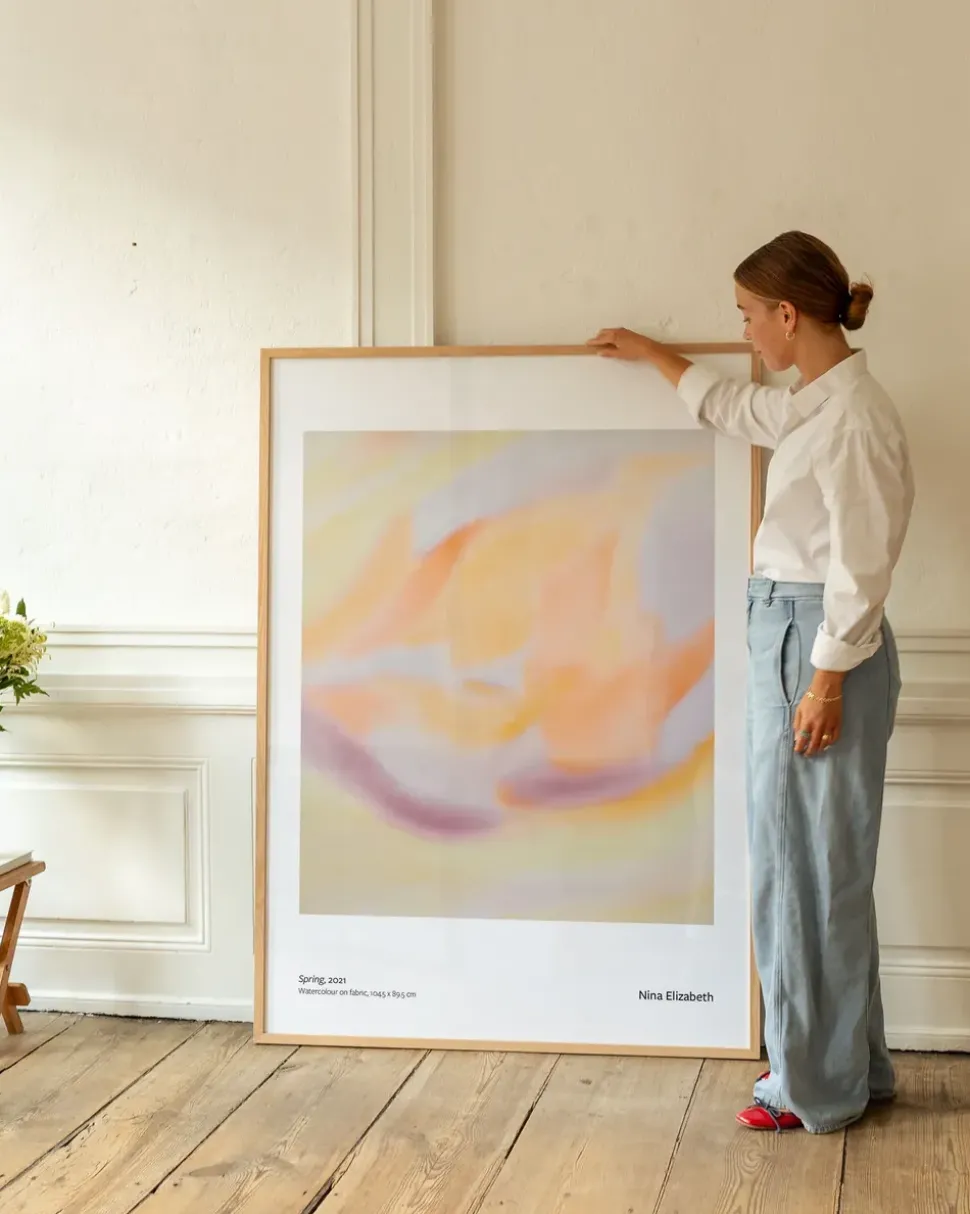 Stellen Sie das Bild in ein helles Wohnzimmer oder über ein stilvolles Sideboard, um dem Raum eine leichte und raffinierte Atmosphäre zu verleihen. Kombinieren Sie es mit anderen von der Natur inspirierten Elementen und neutralen Farben für eine ausgewogene Ästhetik. Es eignet sich perfekt als Einzelstück oder als Teil einer Kunstwand, wo es ein Gefühl der Erneuerung in den Raum bringt.