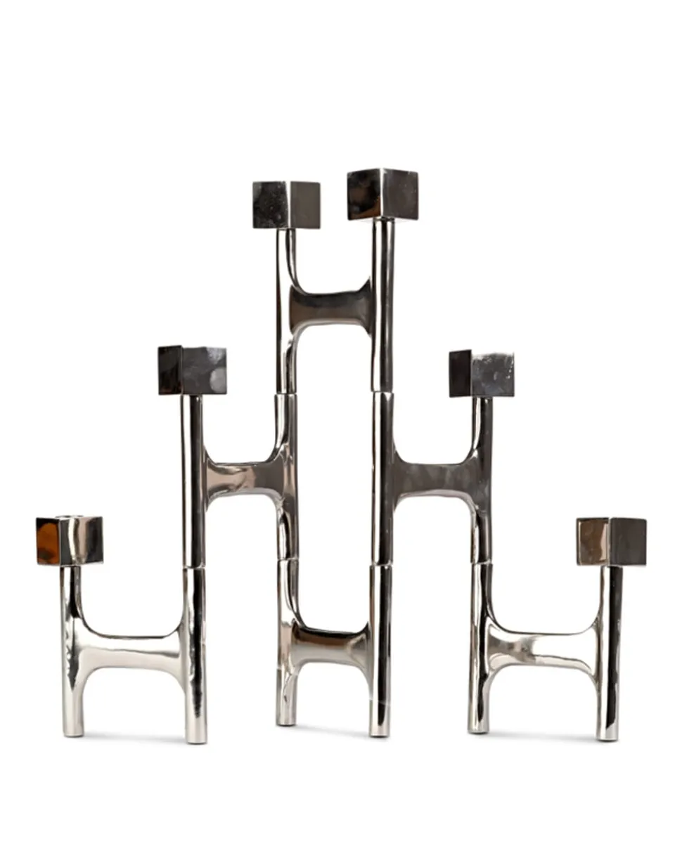 Er eignet sich perfekt als Mittelstück auf dem Esstisch und trägt mit seinem stilvollen Design zu einer gemütlichen Atmosphäre bei. Kombinieren Sie den Kerzenständer mit natürlichen Texturen wie Holz und Keramik, um einen harmonischen Look zu schaffen, oder lassen Sie ihn allein stehen, um ein schlichtes und raffiniertes Statement zu setzen.