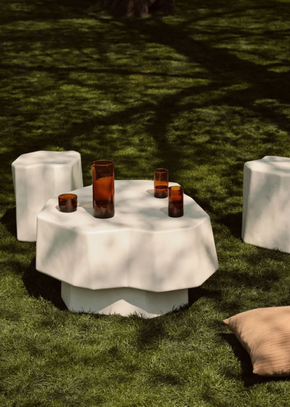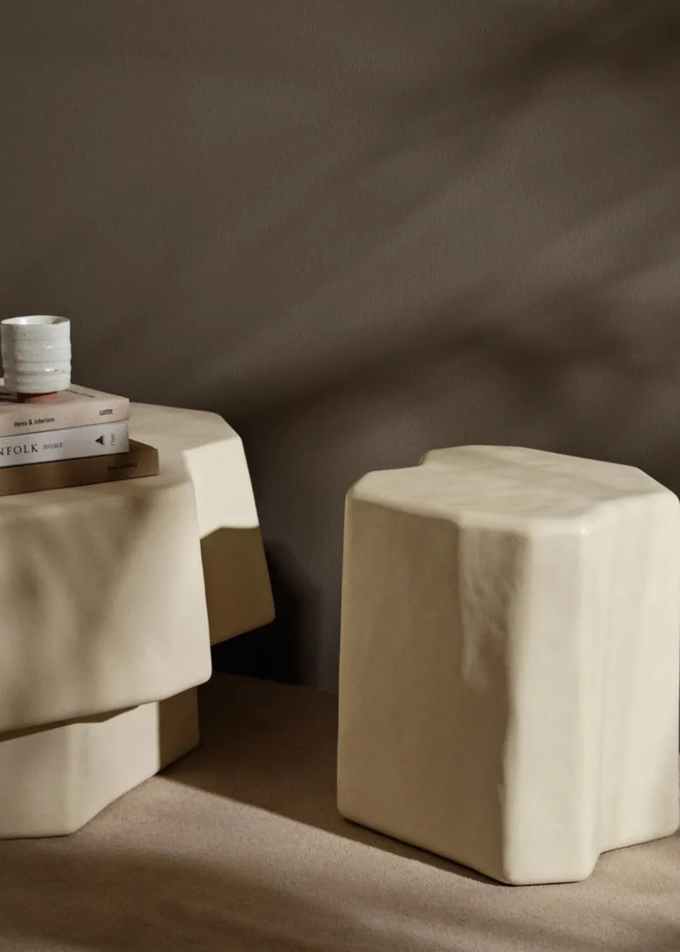 Alle Möbel der Serie werden ausschließlich aus glasfaserverstärktem Beton und einem innovativen Gussverfahren hergestellt, das zu rohen und unregelmäßigen Formen führt, die an behauene Steinblöcke erinnern. Der Staffa Hocker eignet sich sowohl für den Innen- als auch für den Außenbereich und ist ein aufregendes Möbelstück, das die Grenze zwischen Kunst und Funktionalität verwischt. Stellen Sie dieses moderne Möbelstück in den Mittelpunkt Ihres Wohnzimmers oder Ihrer Outdoor-Lounge und erleben Sie, wie es auf natürliche Weise für Gesprächsstoff sorgt.