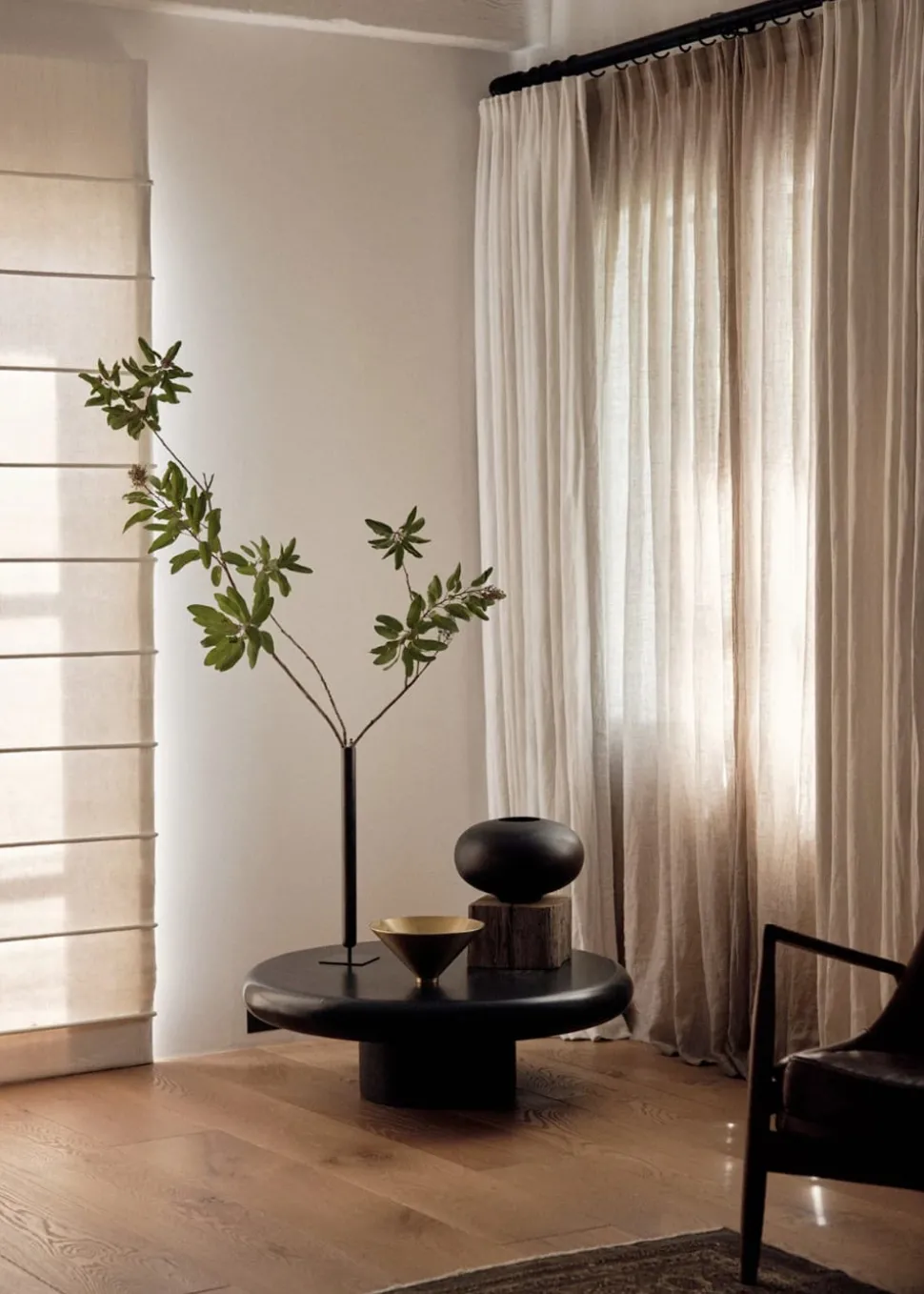 Die Vase ist aus bronziertem Messing und passt mit ihrem schlichten Design in jede Umgebung.