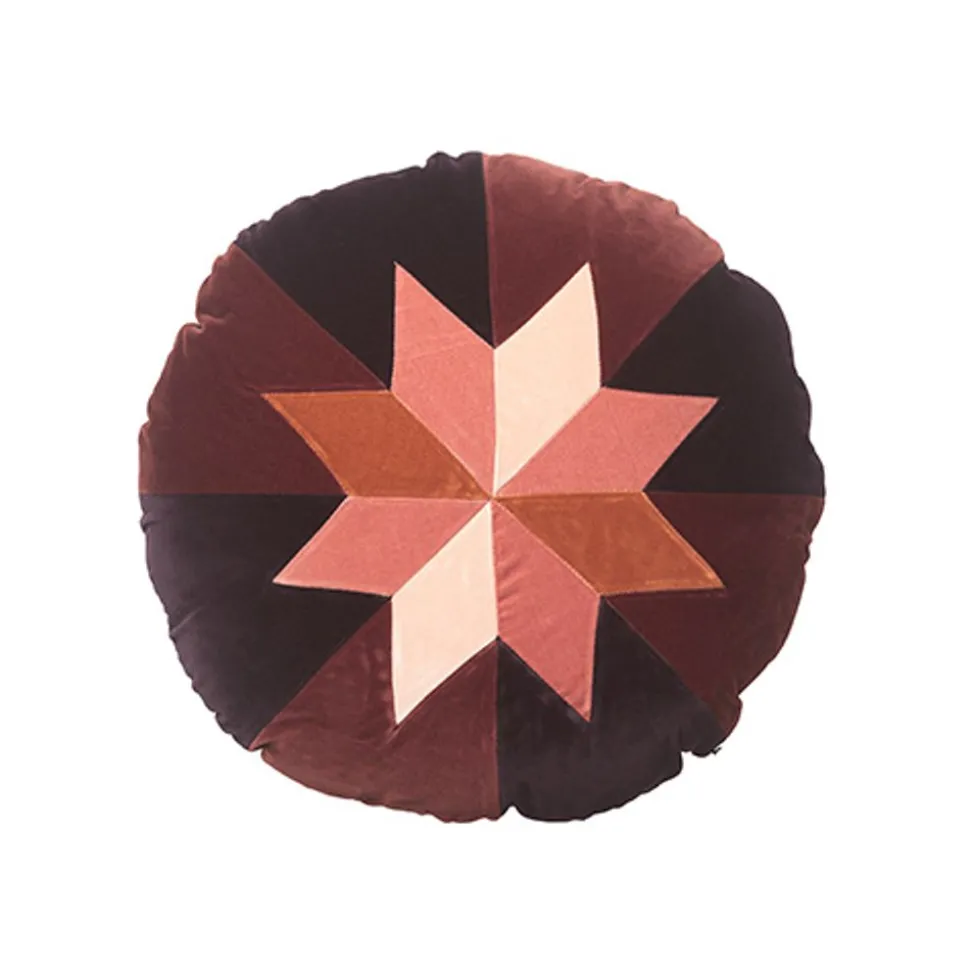 Das Kissen ist auf der Rückseite einfarbig und auf der Vorderseite gemustert, wo ein einzigartiger, bunter Stern angebracht ist.