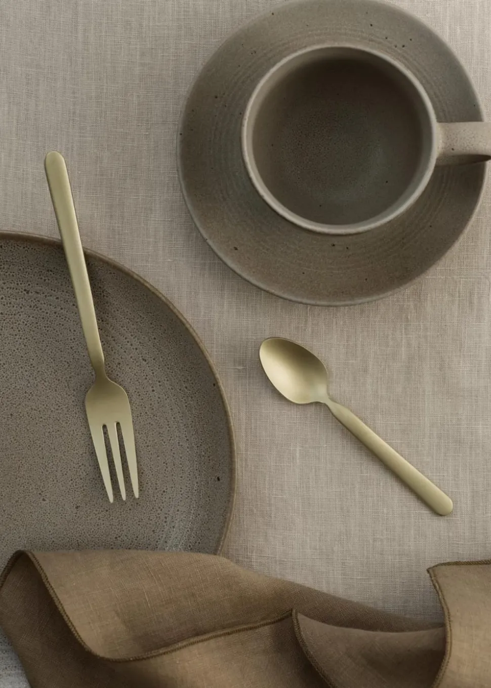 Dette sæt af 4 kagegafler STELLA fra , skabt af designer Theresa Rand, er en fornøjelse for øjet og en nydelse i brug. Med sin slanke linjeføring og funktionelle elegance er Stella-serien en hyldest til moderne borddækning. Hver gaffel er håndværksmæssigt forarbejdet og fremstår med en finish, der balancerer mellem det matte og det skinnende, hvilket fremhæver det enkle, men sofistikerede design. Dette sæt, nu tilgængeligt i en champagnefarve, tilføjer et strejf af luksus til enhver sammenkomst.