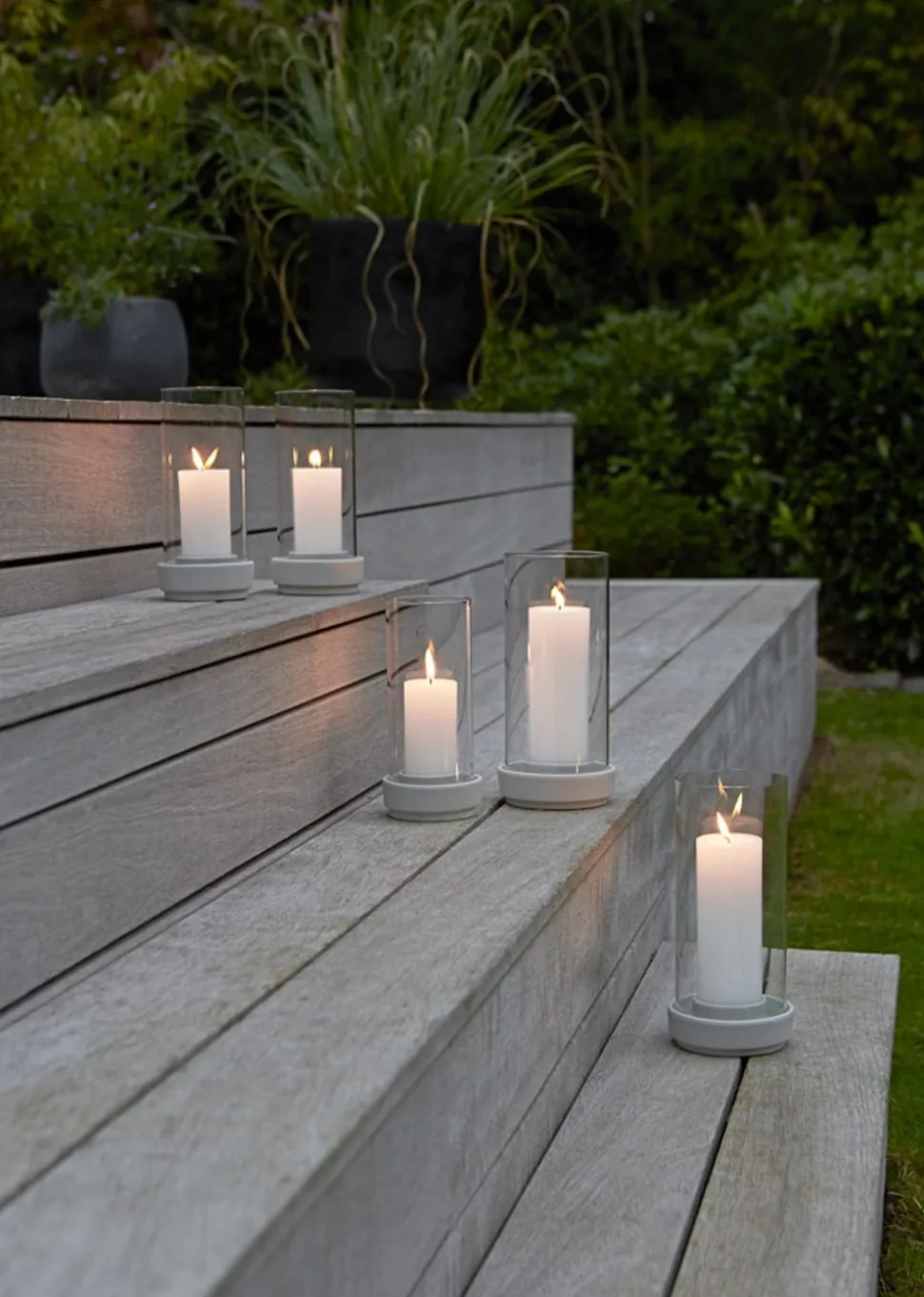 hurricane ist ein schöner Kerzenständer, der das ganze Jahr über sowohl drinnen als auch draußen verwendet werden kann. Der Sockel des Kerzenständers besteht aus Steinzeug, was ihn wetterfest macht, so dass er auch bei frostigem Wetter draußen verwendet werden kann. Außerdem ist er so konzipiert, dass Regenwasser problemlos aus dem Stab abfließen kann. Der Kerzenhalter kann mit allem verwendet werden, von LED-Kerzen, Kerzen und Paraffinkerzen bis hin zu Teelichtern und Blockkerzen.