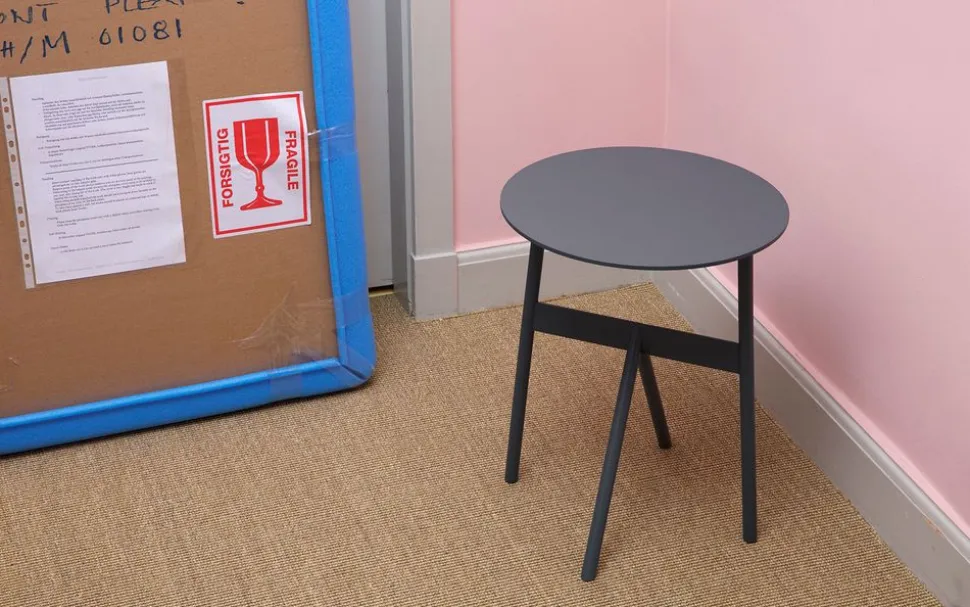 Basierend auf den elementarsten Stahlteilen hat das MSDS Studio einen architektonisch kleinen Beistelltisch geschaffen. Der Stocktisch zeigt Metall in einer rohen und dekonstruierten Art und Weise, während er gleichzeitig eine zarte, starre Qualität beibehält. Die unkonventionelle Beinanordnung des Tisches betont die Stärke des Materials und sorgt für eine interessante Komposition der Elemente. Die ästhetischen Negativräume – der luftige Hohlraum unter der runden Tischplatte und das Dreieck zwischen den abgewinkelten Beinen – sind das Ergebnis der Missachtung der traditionellen Anordnung der Tischbeine und der Schaffung einer neuen Form der Symmetrie. Stock wirkt wie eine kleine strenge Skulptur, die gleichzeitig als praktischer, stabiler Beistelltisch dient.