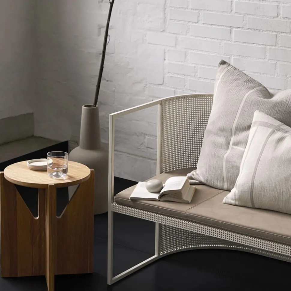 Studio Stool ist aus Eiche gefertigt, die dunkel geölt ist. Der Hocker ist einfach zu montieren, und beim Zusammenbau sind keine Nägel, Schrauben oder ähnliches zu sehen. Er eignet sich perfekt als Nachttisch, Stuhl und zum Aufstellen von Pflanzen.