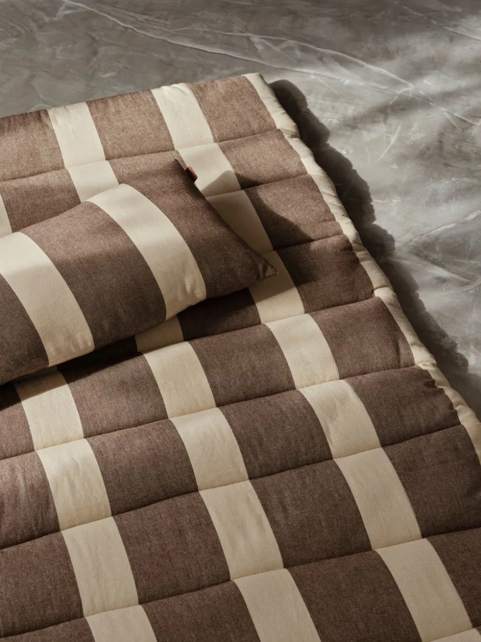 Die vielfältigen Funktionen des Strand Cushion machen es zu einer vielseitigen Ergänzung für jeden Raum. Legen Sie es auf Ihr Lieblingssofa oder verwenden Sie es als gemütliche Ergänzung für Ihre Leseecke, um eine einladende Atmosphäre zu schaffen, die zu Ruhe und Entspannung einlädt. Dank seiner neutralen Farbpalette und des zeitlosen Streifenmusters lässt er sich leicht mit anderen Elementen kombinieren und sorgt so für einen harmonischen und geschlossenen Einrichtungsstil. Kombinieren Sie ihn mit der passenden Matratze oder mit anderen Textilien, um Ihrem Zuhause mehr Tiefe und Interesse zu verleihen, um den Look zu vervollständigen.