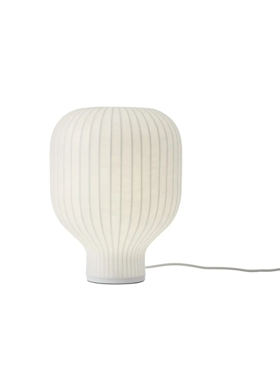 Die Strand Tischleuchte ist ein schöner Verweis auf die Designgeschichte und gleichzeitig ausgesprochen modern. Ihre Form ist weich und spielerisch, mit einer skulpturalen Form, die mit einer versteckten Lichtquelle ausgestattet ist, die ihre monolithische Form beleuchtet.