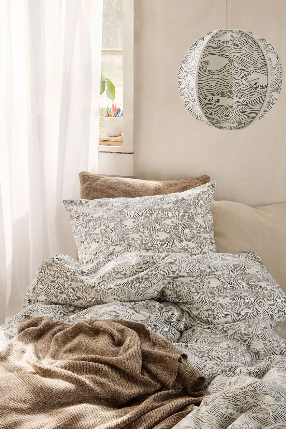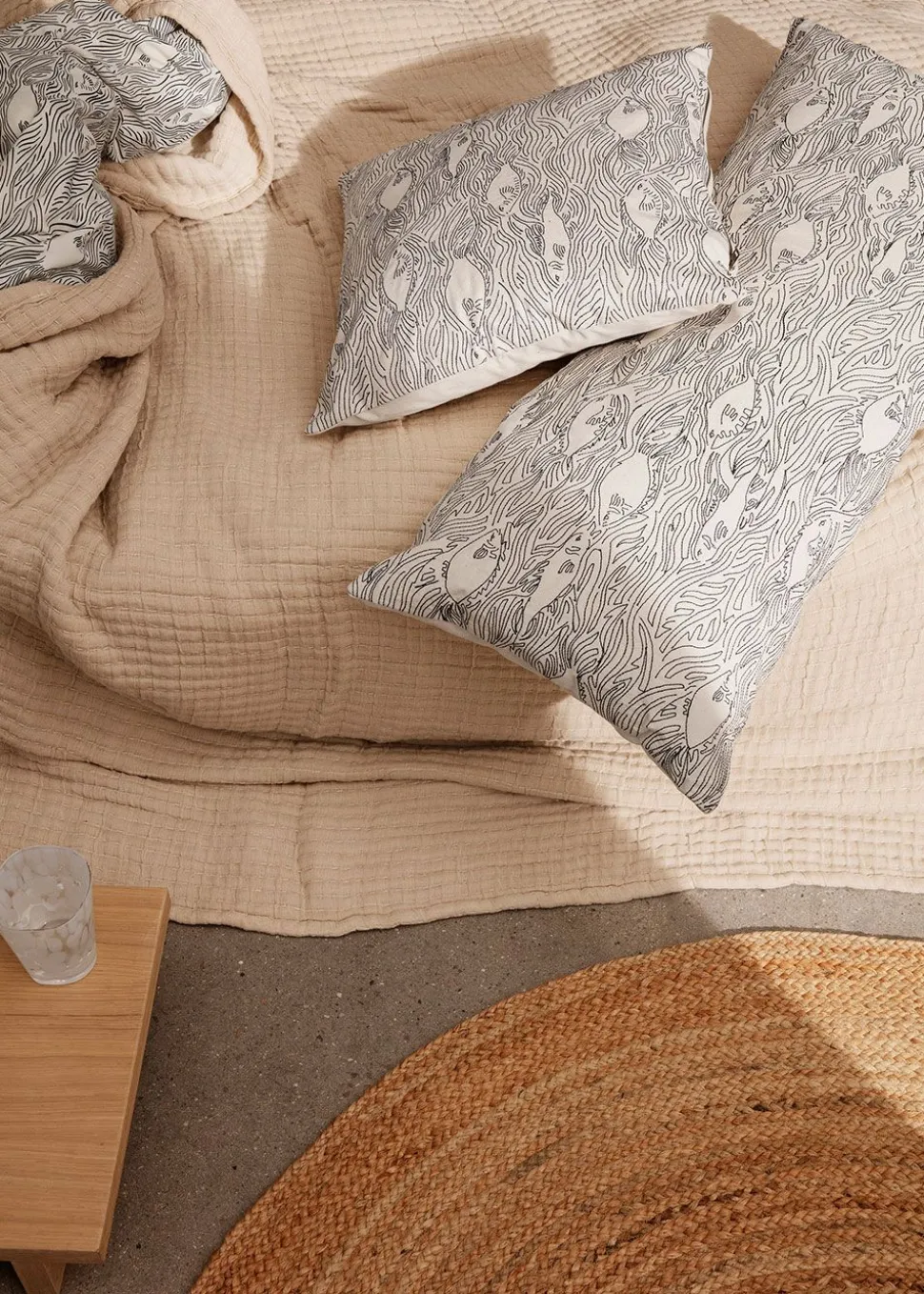 Die schönen Stream-Kissen von haben einen abstrakten und verspielten Ausdruck. Das Design ist von der japanischen Ästhetik inspiriert und fängt die Animation von schwimmenden Fischen und den betörenden, endlosen Fluss des Wassers ein. Das Kissen ist aus 100% GOTS-zertifizierter Bio-Baumwolle hergestellt. Das weiche und stilvolle Kissen kann sowohl im Kinderzimmer als auch in der übrigen Wohnung verwendet werden.