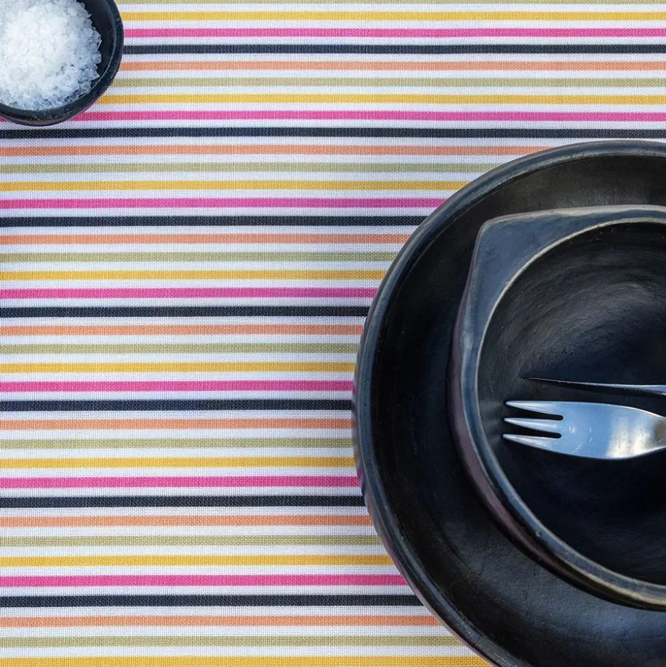 Die gestreifte Tischdecke Sonja von Langkilde & Son ist eine Hommage an elegante Schlichtheit und farbenfrohe Lebendigkeit. Inspiriert von japanischem Steingut und Porzellan, weckt diese einzigartige Tischdecke Erinnerungen an Raku-Keramik und die friedliche japanische Teezeremonie. Aus strapazierfähigem Fahnenstoff mit aufgedrucktem Design gefertigt, ist Striped Sonja nicht nur ein optischer Leckerbissen, sondern auch eine praktische Lösung für den täglichen Gebrauch mit der Möglichkeit, sie bei bis zu 60 Grad zu waschen.