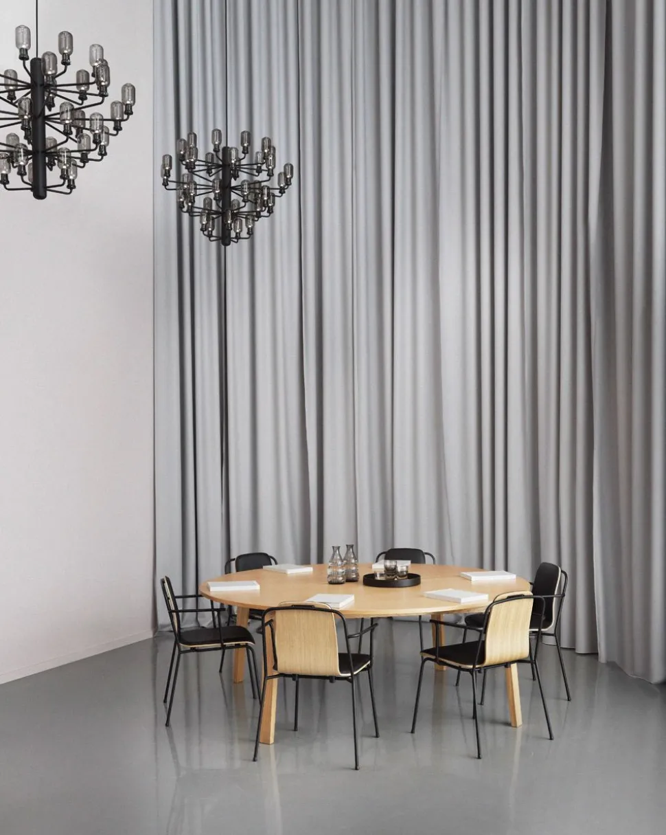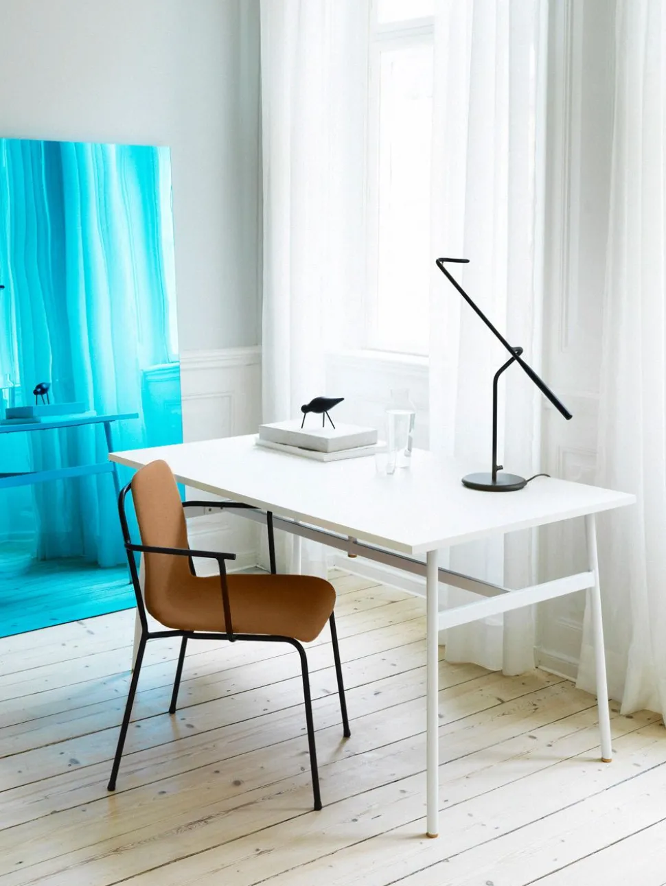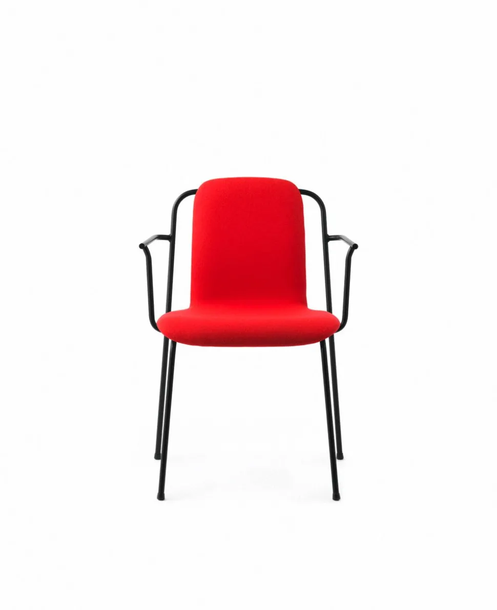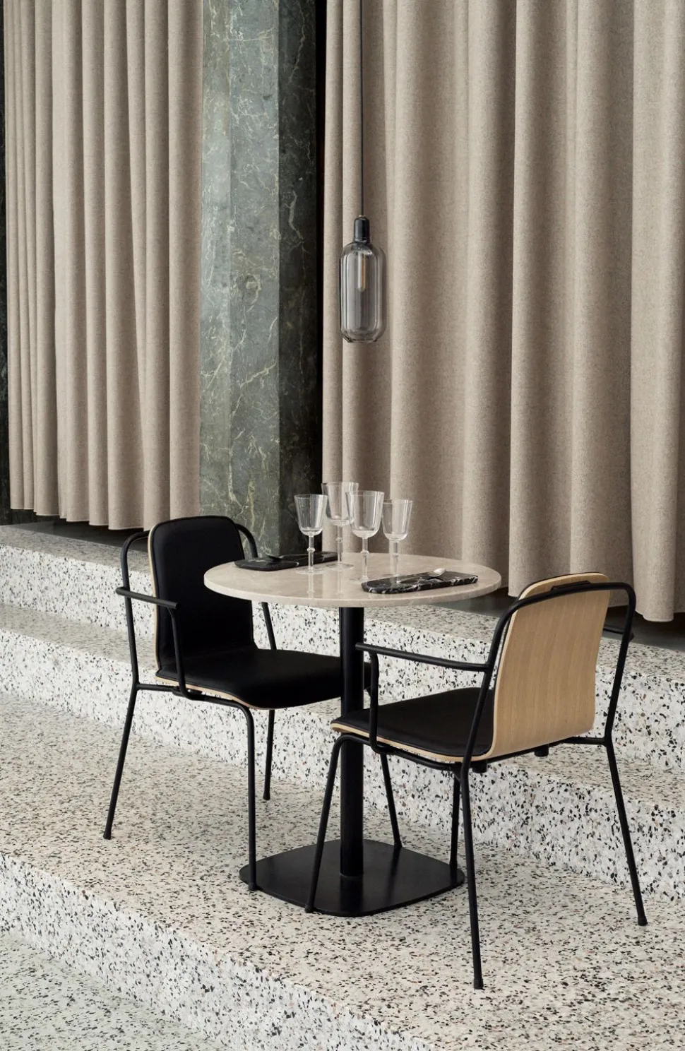 Die Studioserie von Simon Legald ist ein origineller Entwurf, der einen industriellen und einfachen Metallrahmen mit einigen der köstlichsten Materialien und Textilien von kombiniert. Das Gestell des Stuhls umgibt die Sitzfläche und verleiht dem Stuhl zusätzliche Breite, während es gleichzeitig einen visuell einzigartigen Ausdruck verleiht. Die Sitzfläche des Stuhls ist in einer großen Auswahl an Varianten erhältlich, sowohl mit lackiertem Eichenfurnier als auch mit Polsterung in vielen Farben, was dazu beiträgt, Ihre Möbel zu personalisieren und sicherzustellen, dass sie Ihr Zuhause optimal ergänzen.