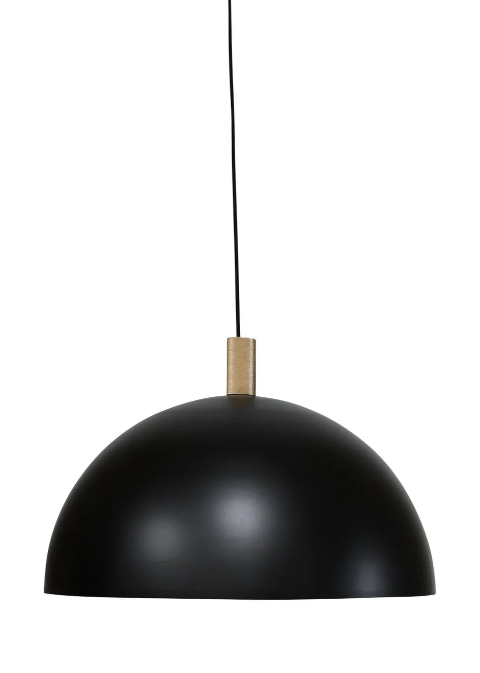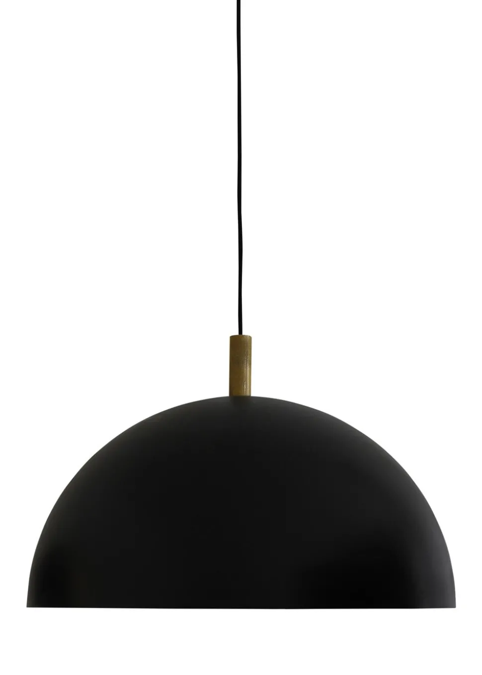 Die Studio-Hängeleuchten sind aus schwarz pulverbeschichtetem Stahl gefertigt. Die Messingdetails sind aus massivem Messing und naturbelassen.