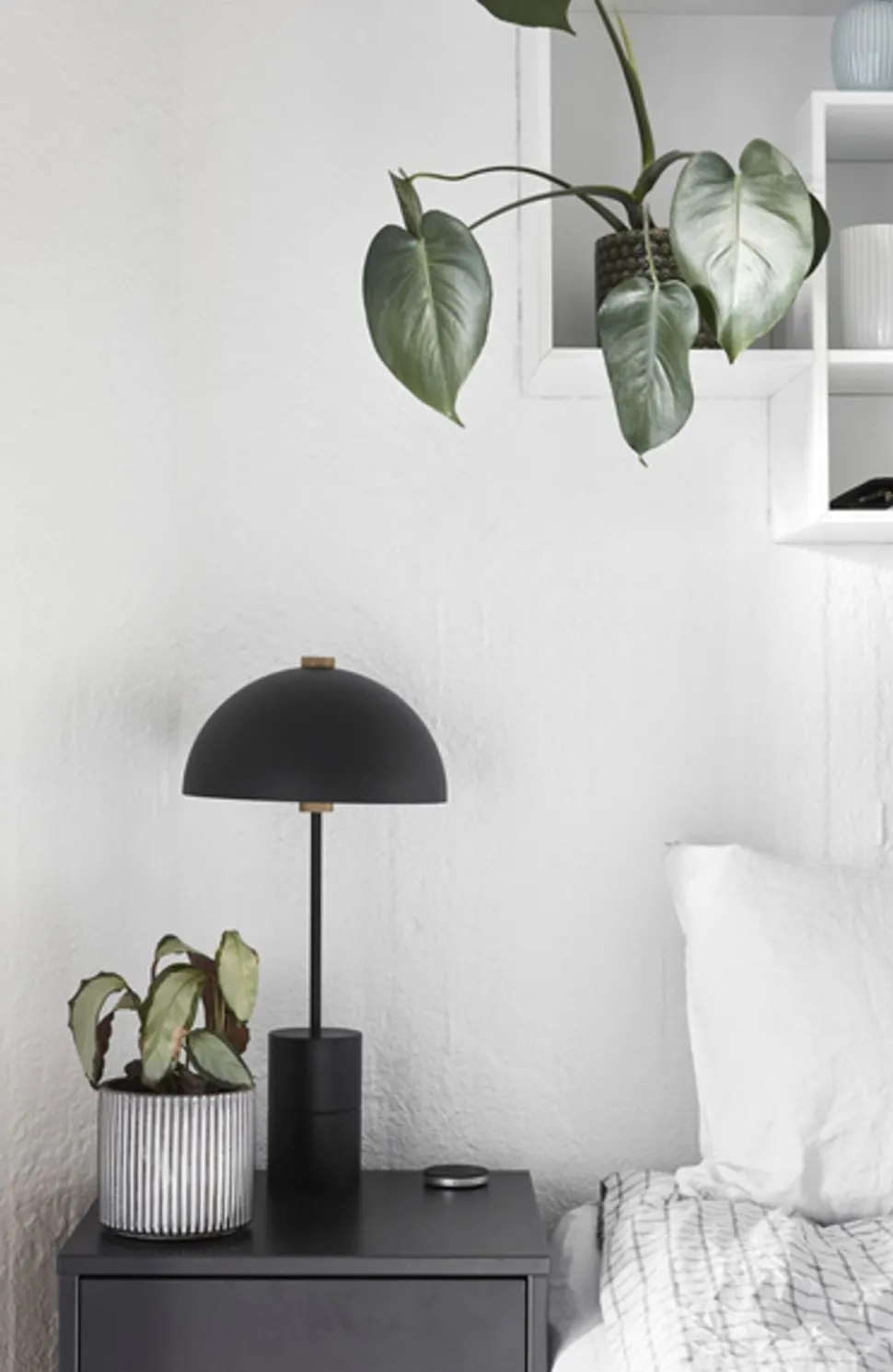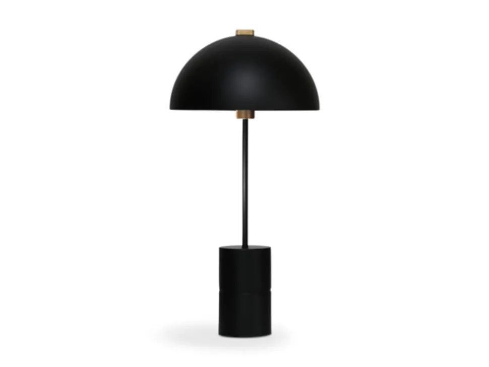 Studio-Tischleuchten sind aus schwarz pulverbeschichtetem Stahl gefertigt. Die Messingdetails sind aus massivem Messing und naturbelassen.
