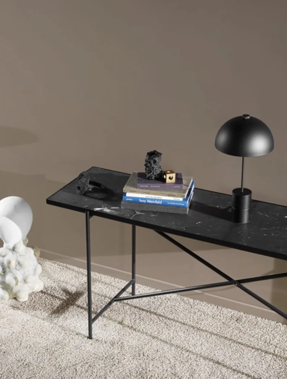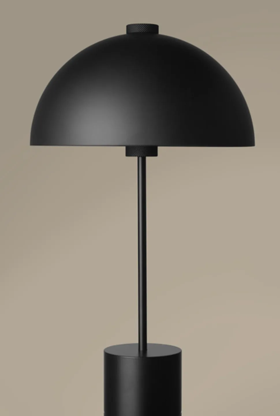 Studio-Tischleuchten sind aus schwarz pulverbeschichtetem Stahl gefertigt. Die Messingdetails sind aus massivem Messing und naturbelassen.