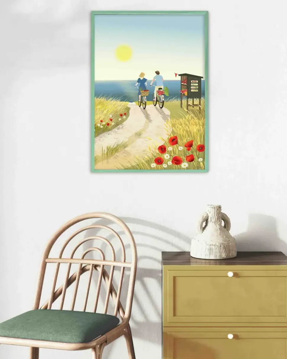 Das Poster eignet sich hervorragend als dekorativer Mittelpunkt in Wohn- und Schlafzimmern und schafft eine harmonische Atmosphäre. Kombinieren Sie es mit natürlichen Materialien wie hellem Holz und leichten Textilien, um die Leichtigkeit des Sommers zu unterstreichen und Ihrer Einrichtung einen frischen Wind zu verleihen.