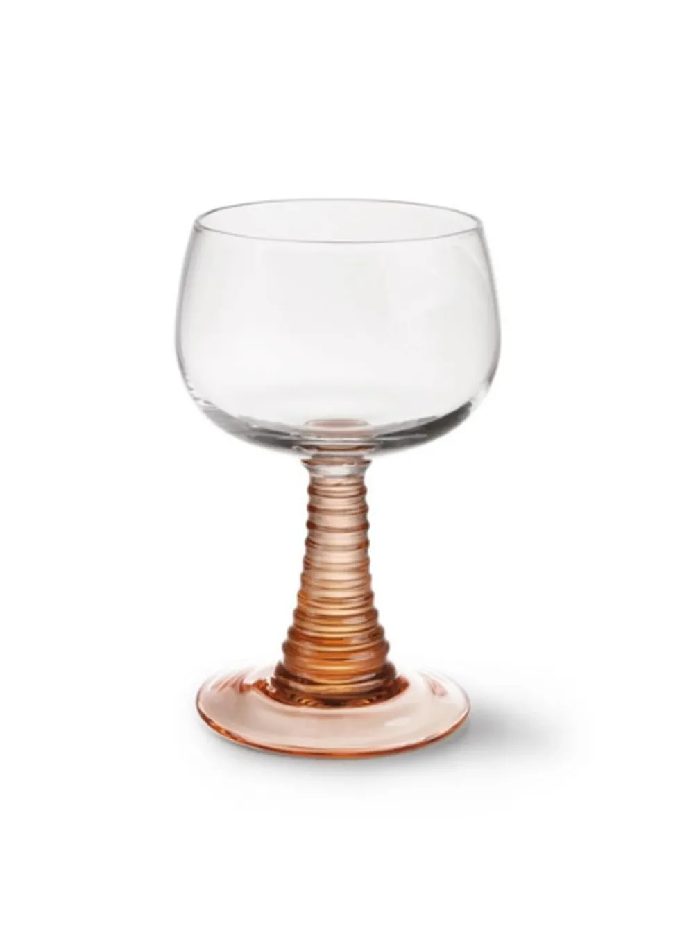 Schöne verschiedenfarbige Weingläser mit einem schönen Design im Boden, das das Weinglas zu etwas Besonderem macht. Das Glas ist mundgeblasen und hat einen massiven Glasboden mit verschiedenen Farben. Bieten Sie Ihren Gästen ein Glas Wein in diesem Glas an und der Tisch sieht mit einem einzigartigen Weinglas schöner aus als mit einem herkömmlichen Weinglas. Das Weinglas ist sowohl spülmaschinenfest als auch lebensmittelecht.