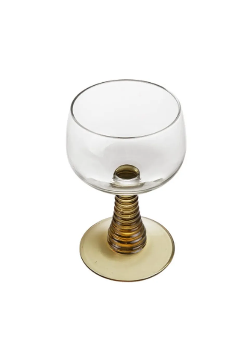 Schöne verschiedenfarbige Weingläser mit einem schönen Design im Boden, das das Weinglas zu etwas Besonderem macht. Das Glas ist mundgeblasen und hat einen massiven Glasboden mit verschiedenen Farben. Bieten Sie Ihren Gästen ein Glas Wein in diesem Glas an und der Tisch sieht mit einem einzigartigen Weinglas schöner aus als mit einem herkömmlichen Weinglas. Das Weinglas ist sowohl spülmaschinenfest als auch lebensmittelecht.